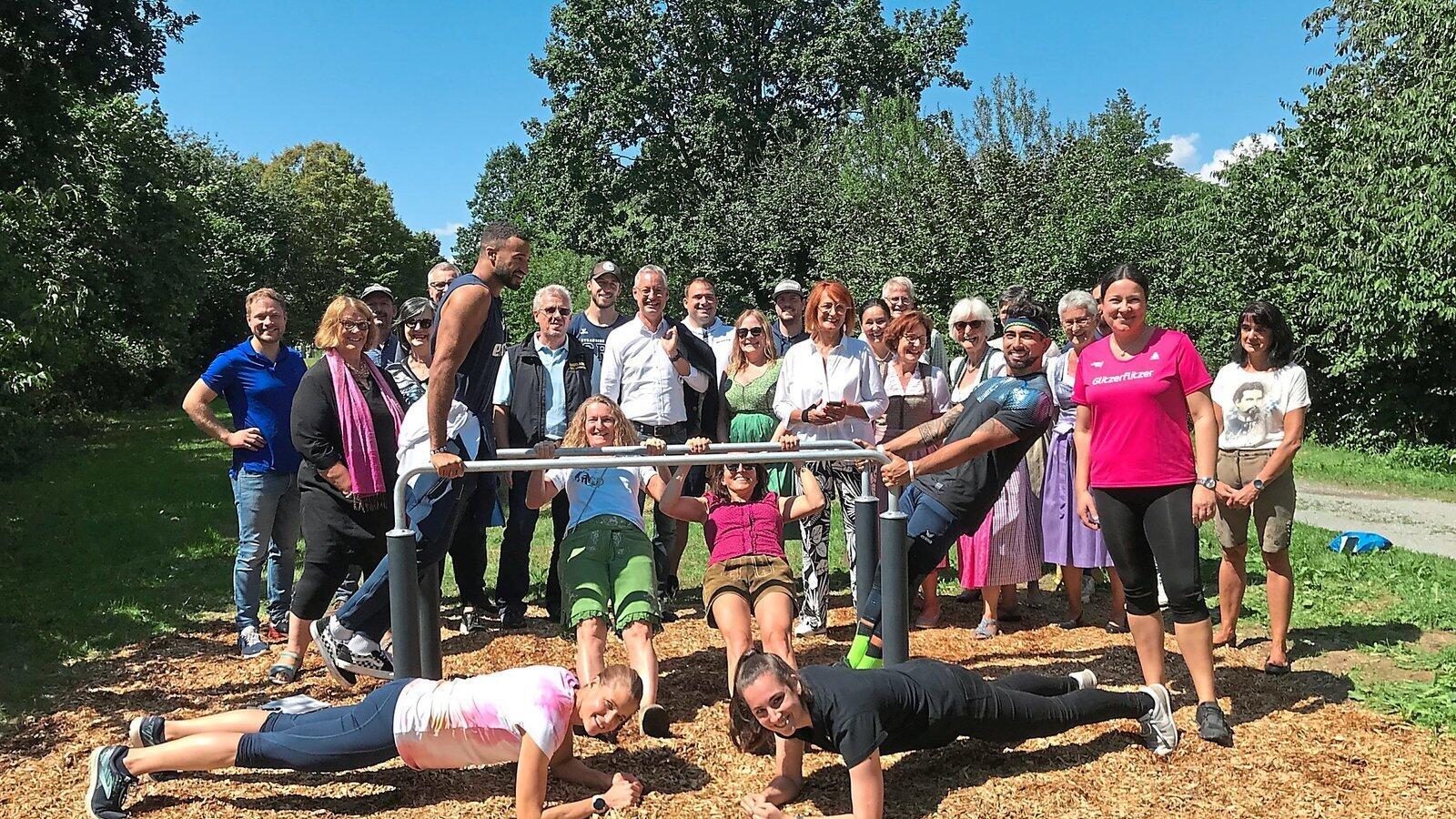 Die Teilnehmer der offiziellen Eröffnung des neuen Fitness-Trail in Ittling probierten die verschiedenen Möglichkeiten an den drei Stationen rund um den Zwiequanteriner Weiher mehr oder weniger eifrig aus.