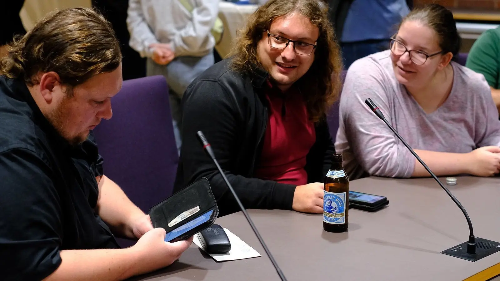 Jetzt warten alle bei Getränken und Häppchen auf die Ergebnisse in Straubing.