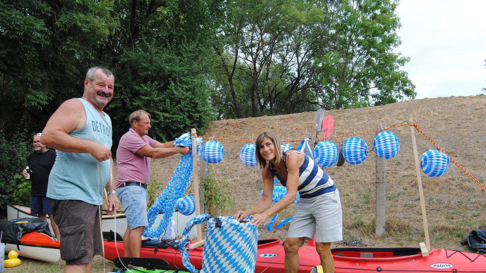 Vor der Lampionfahrt schmücken die Teilnehmer der Lampionfahrt ihre Boote mit Dekoration und vielen Lichtern.