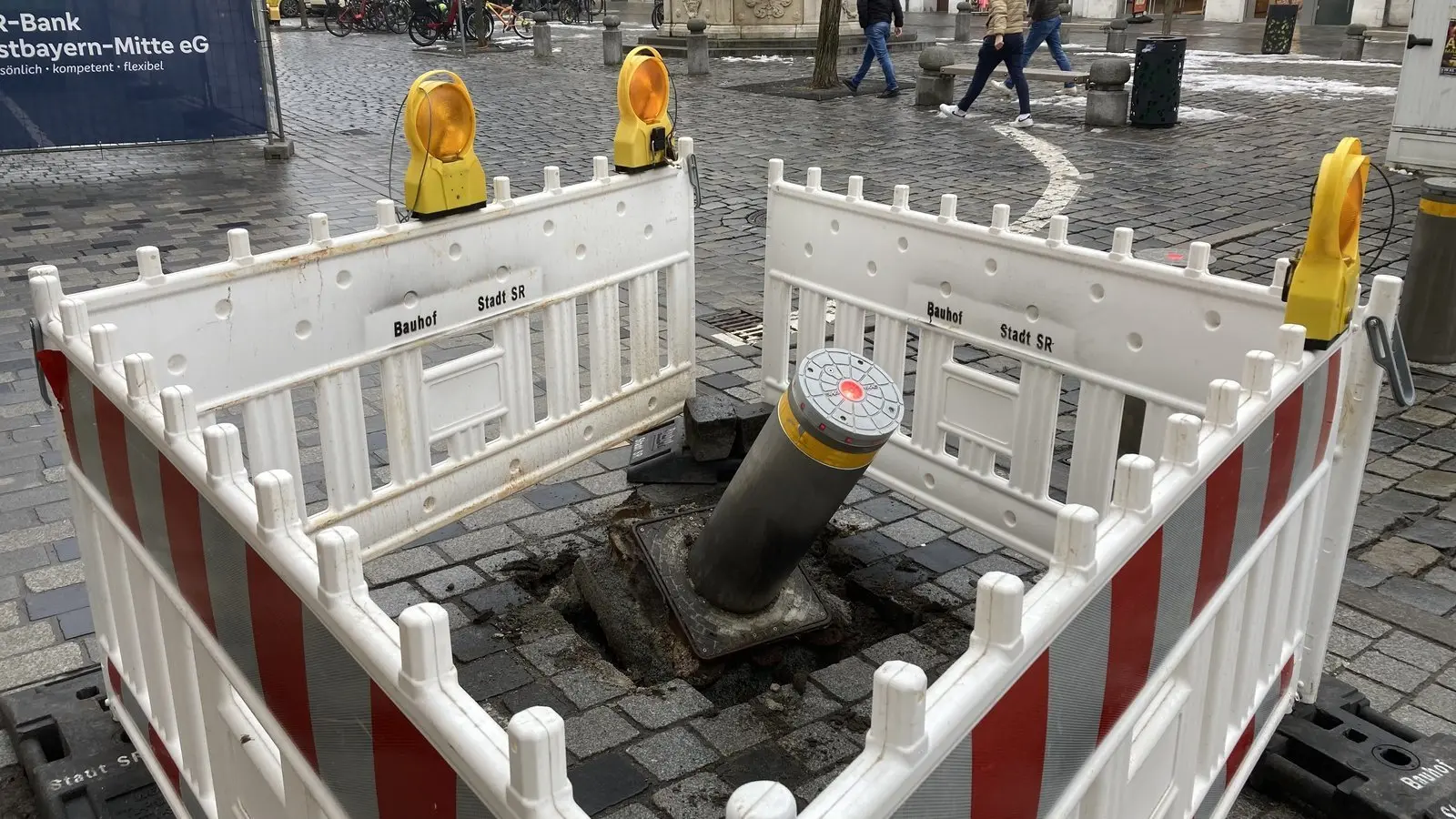 „Schon wieder“, murmelt ein Passant, der am Donnerstag über den Straubinger Ludwigsplatz schlendert. Was er meint: Erneut ist ein Poller im Bereich der Fraunhoferstraße umgefahren worden.