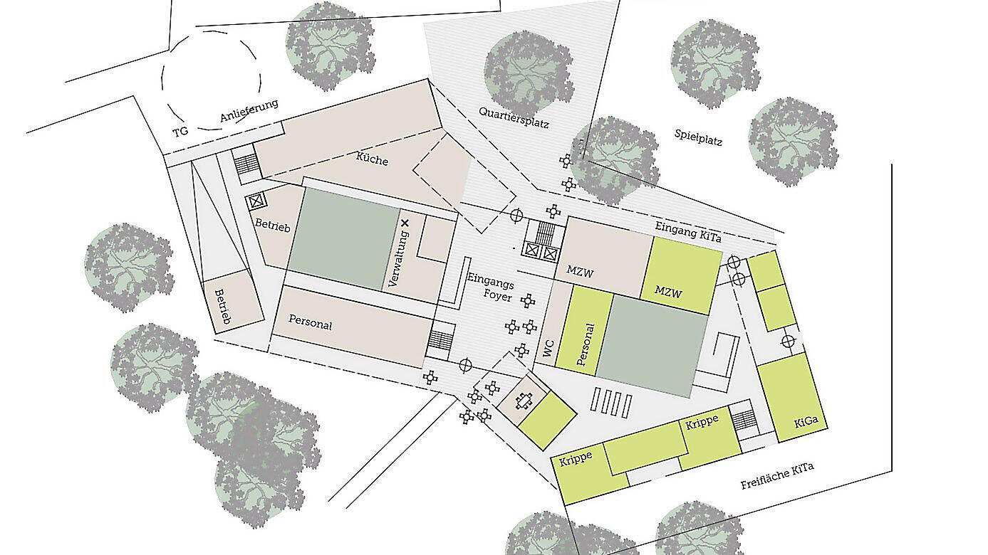 Entwurf für das Erdgeschoß des Ersatzneubaus für das Seniorenheim St. Nikola.