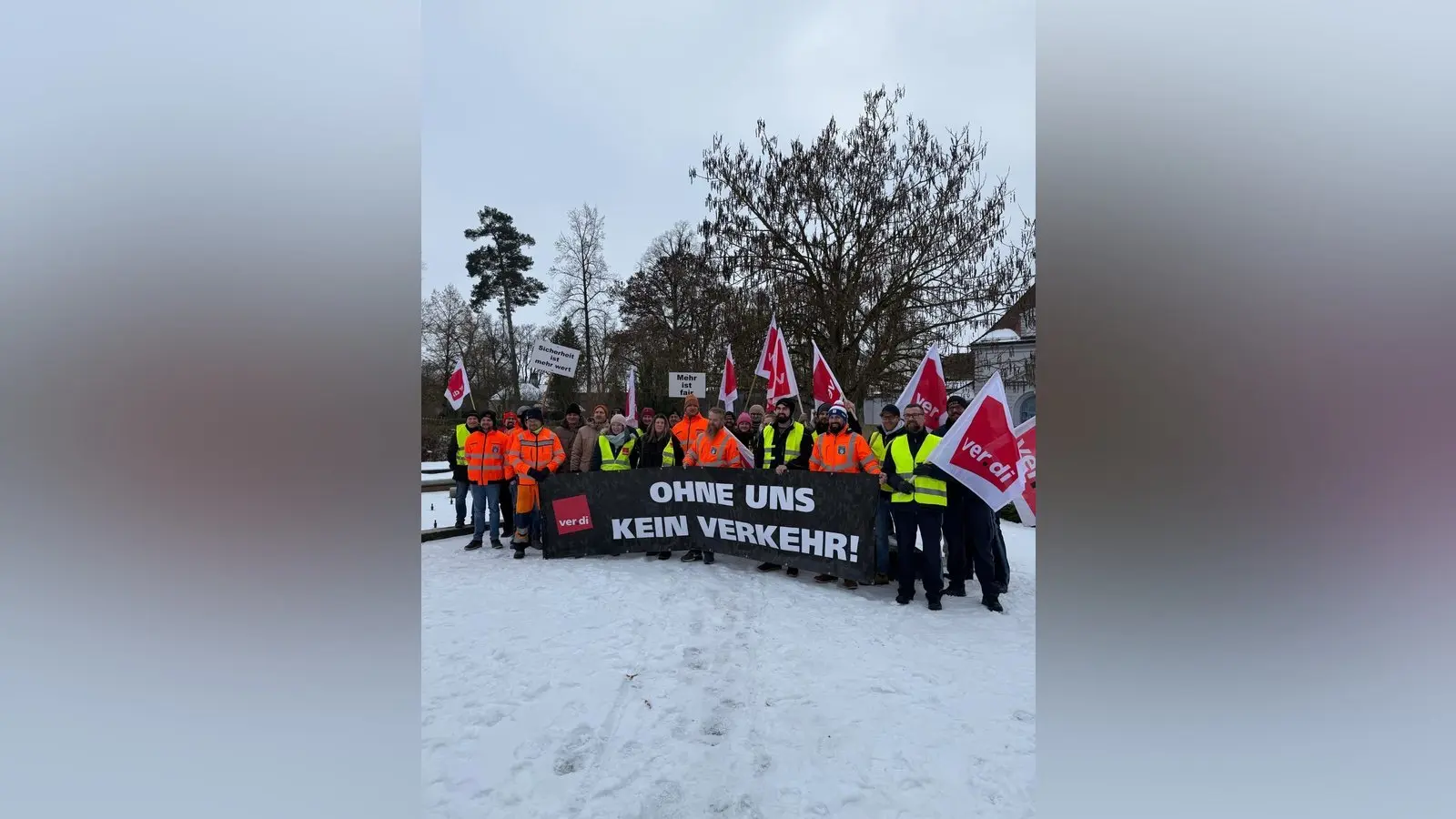 Trotz Temperaturen von minus sechs Grad ließen sich die Teilnehmenden nicht davon abhalten, ihren Forderungen lautstark Nachdruck zu verleihen. Im Mittelpunkt der Kundgebung standen die Mitarbeiter der JVA Straubing, viele von ihnen verbeamtet.