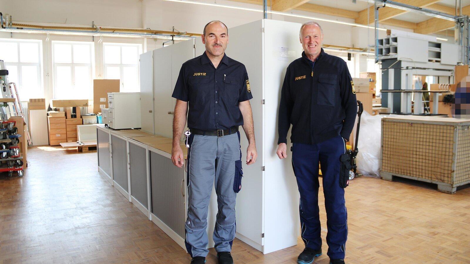 Klaus Buchner (rechts) leitet die Abteilung „EDV-Möbel“ in der JVA. Wenn er in Pension geht, wird Michael Biermeier (links) zum stellvertretenden Betriebsleiter aufsteigen.