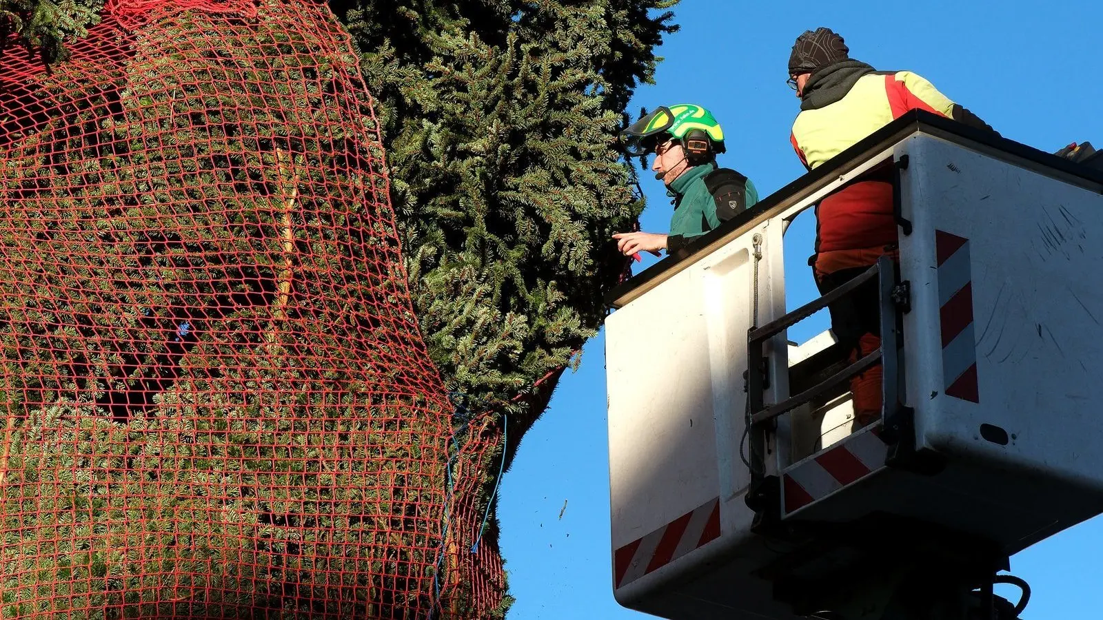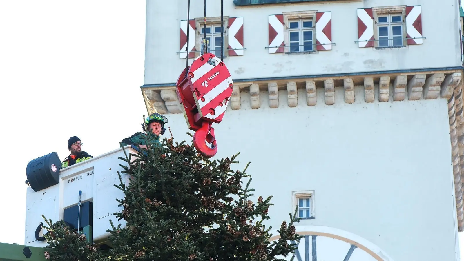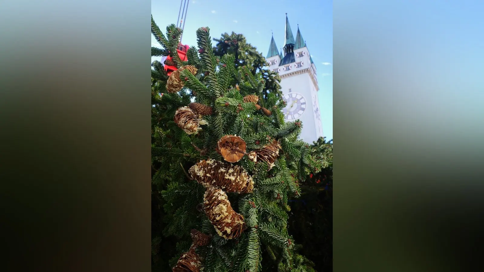 „Nächstes Jahr stell ma an Christbaum zum Volksfest auf“, grantelte ein alter Straubinger am Donnerstagnachmittag am Stadtplatz. Straubing ist mit der Fertigstellung von öffentlichen Baustellen oft hinten dran, beim Aufstellen des Christbaums führen wir aber wieder, wie im vergangenen Jahr, den Freistaat an. Noch im Oktober wurde die Nordmanntanne mit 16 Meter Höhe, einem Gewicht von 3,8 Tonnen und einem unteren Durchmesser von rund 6,5 Meter aufgestellt.