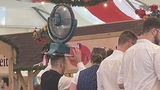 Im Bierzelt, 19 Uhr: 31 Grad im Freien, sehr viele klitschnasse Menschen ziehen an mir vorbei. Sind die Wasserrutsche gefahren? (phi)
