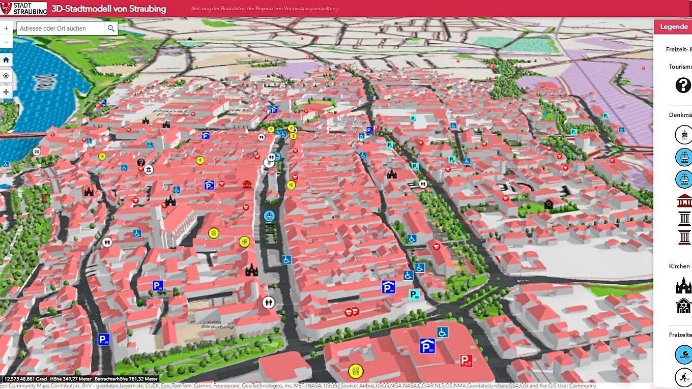 Eine nette Spielerei findet sich beim Online-Angebot der Stadt unter dem Titel: Geo-Informationssystem. Mit der Nutzung der Basisdaten der Bayerischen Vermessungsverwaltung kann man Straubing in 3D entdecken.