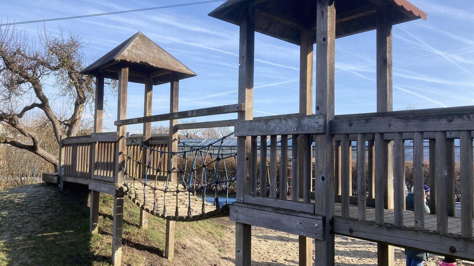 Der Spielplatz der Papst-Benedikt-Schule in Straubing ist an manchen Stellen in die Jahre gekommen. Vor allem am beliebtesten Spielgerät der Kinder, eine Kletterturm-Spielanlage mit Hängebrücke, nagt der Zahn der Zeit.