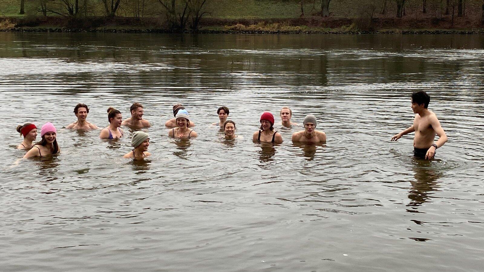 Eine Gruppe von Studierenden des TUM Campus geht seit zwei Jahren regelmäßig in die Donau zum Eisbaden.