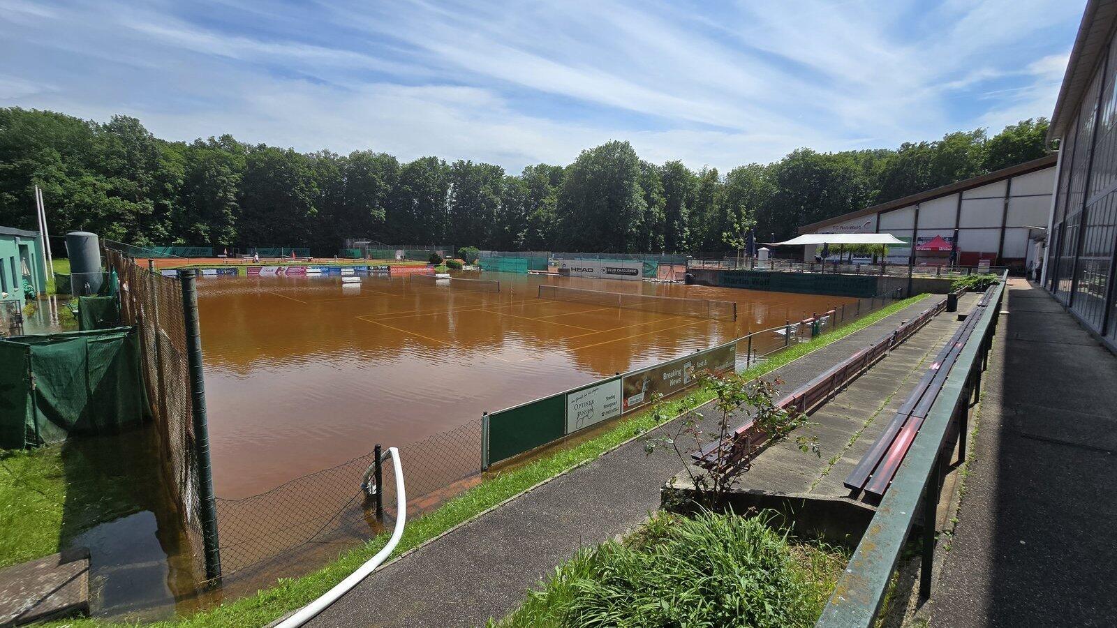 Die drei Hauptplätze des TC Rot-Weiß standen im Juni knietief unter Wasser. Das Hochwasser zeigte in Form von steigendem Grundwasser seine Auswirkungen. (Archivfoto)