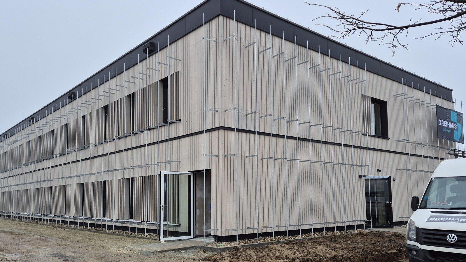 Der Erweiterungsbau am Johannes-Turmair-Gymnasium: An den Stäben an der Fassade sollen sich im Sommer Clematis und Wein ranken.