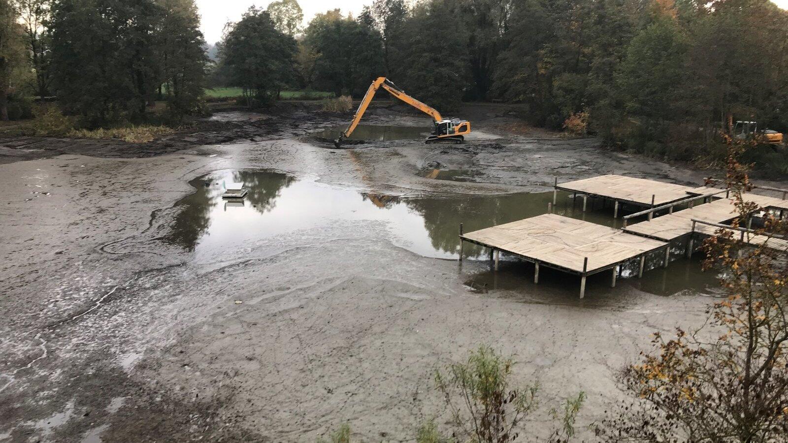 Straubings Eisweiher wird mit großem Aufwand von Schlammschicht befreit