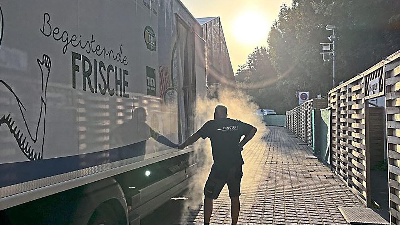 Unterwegs am Morgen mit Lieferanten auf dem Straubinger Volksfest