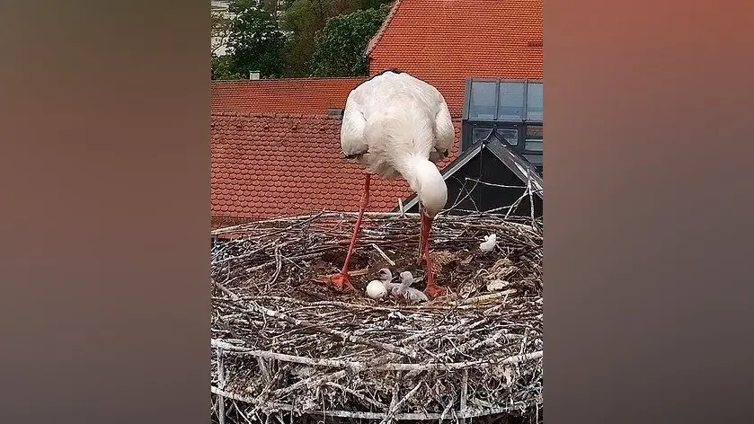 Die Webcam von Sport Erdl lässt am Aufwachsen des Storchennachwuchses teilhaben.