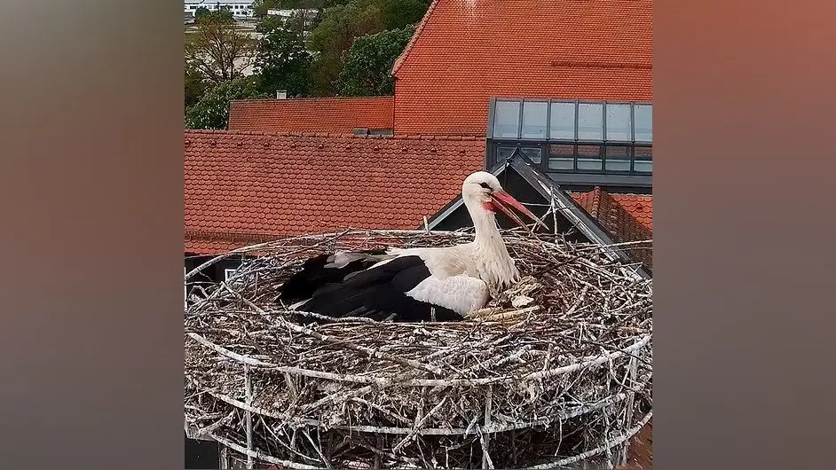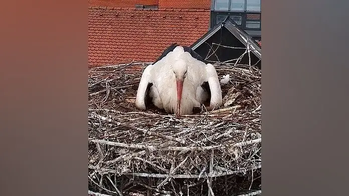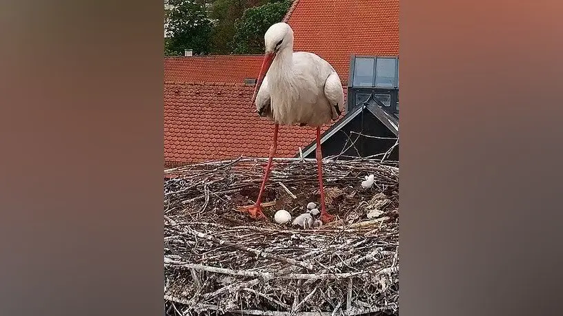 Martin Erdl freut sich, er wird quasi Onkel, seine Störche Barbie und Ken auf seinem Dach haben zwei Küken bekommen. Er berichtet: „Vier Eier lagen im Nest, eines fiel leider vergangene Woche aus dem Nest heraus und war nicht mehr zu retten. Aus zwei Eiern ist Nachwuchs geschlüpft, ein Ei, das vierte, wird noch ausgebrütet.“ Es werden jetzt immer mehr Störche in der Stadt. Wie wird das weitergehen, fragt er sich, „vielleicht werden die Störche einmal eine Touristenaktion“.