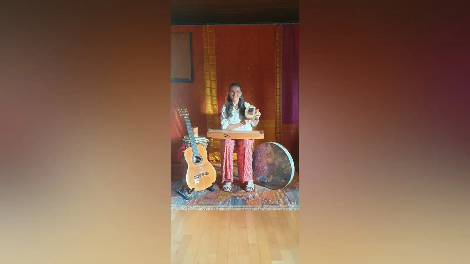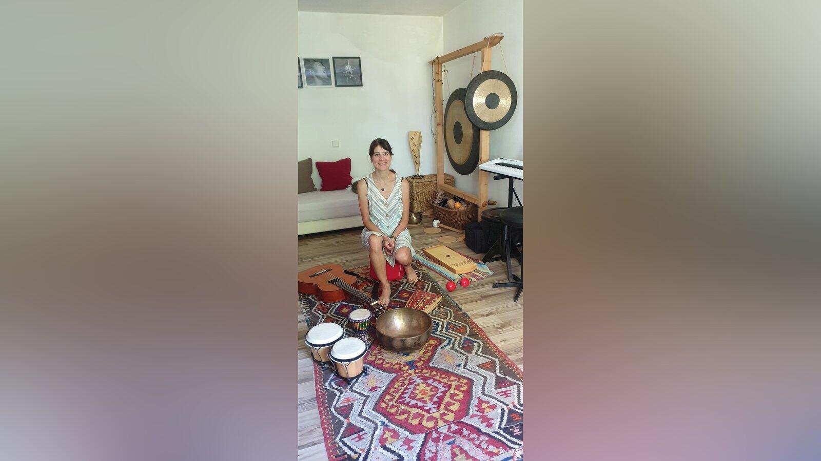 Die gebürtige Passauerin Gaby Flossmann fand ihren Platz auf der Palliativstation über Umwege. 1977 geboren, wuchs sie schon musikbegeistert auf. Jedoch war sie zunächst in der Laborforschung tätig, um „etwas gescheites“ zu lernen damit sie so schnell wie möglich auf eigenen Beinen stehen konnte. Nach einer Umorientierung zur Heilerziehungspflegerin fand sie zur Musik zurück. Trotz finanzieller Schwierigkeiten bildete sich Gaby Flossmann immer weiter und absolvierte die Ausbildung zur Musiktherapeutin. Eine Ärztin bot ihr schließlich den Job auf der Passauer Palliativstation an, wo sie bis heute mit Begeisterung arbeitet – neben ihrer Arbeit in der Neurologie, Psychiatrie, im Musikunterricht und vieles weitere. Zusammen mit ihrem Mann, der auch in der Musikbranche tätig ist, hat sie ein Arbeitszimmer bei sich zu Hause eingerichtet, das genug Platz für Instrumente, Noten und Proben bietet.