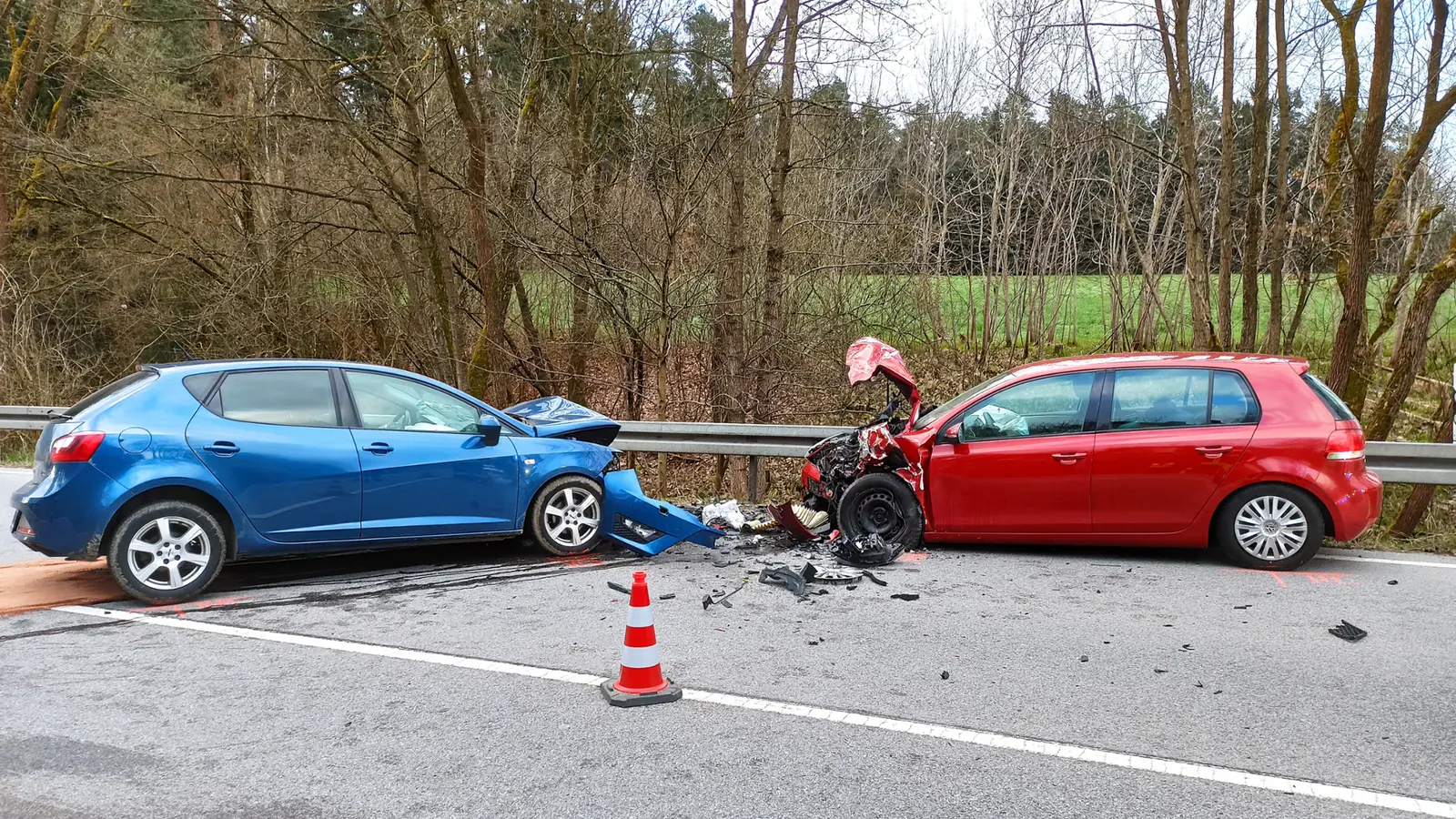 Die B85 ist nach einem Unfall bei Patersdorf komplett gesperrt - zwei Autos sind frontal zusammengestoßen.