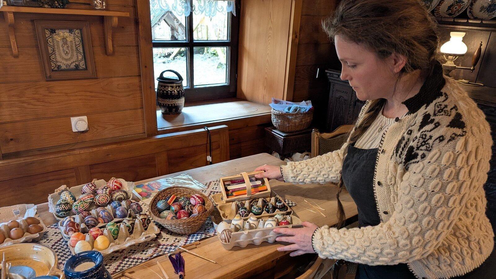 Nadine Stengelmeier gestaltet in Kollnburg Ostereier nach alter sorbischer Art