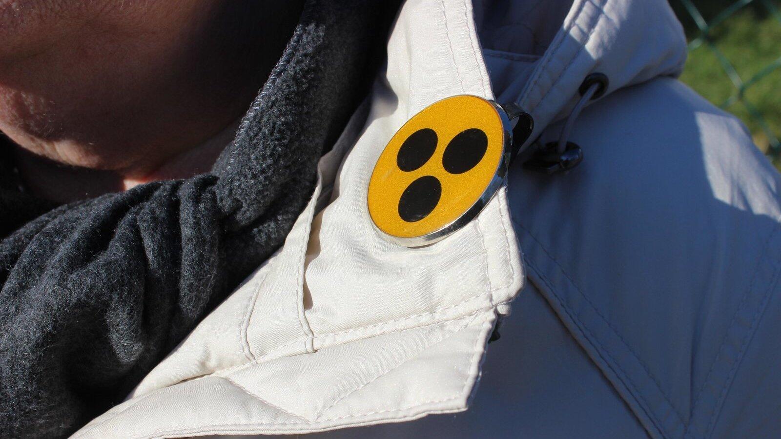 Schwarz auf Gelb: Sehende aufgepasst! Blinde und Sehbehinderte tragen dieses Abzeichen als Hinweis.