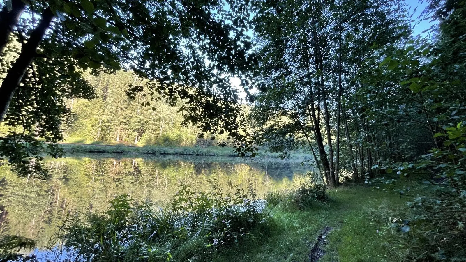Der Pfad ab Gstadt, der sagenhafte Blicke auf den Schwarzen Regen bietet, mündet in die Forststraße nach Gumpenried. Dort quert man die Brücke über den Fluss und folgt ihm flussaufwärts am rechten Ufer. Auch hier gibt es immer wieder bezaubernde Stellen. Auch insgesamt ist der Flusswanderweg von Gstadt zu Fuß oder mit dem Rad bis Böbrach romantisch und idyllisch. Ein bisschen „Mountainbikefeeling“ schleicht sich ein, wenn man durch die Pfützen fährt, die man, fast auf einem Niveau mit dem Regen, nahezu immer dort hat.