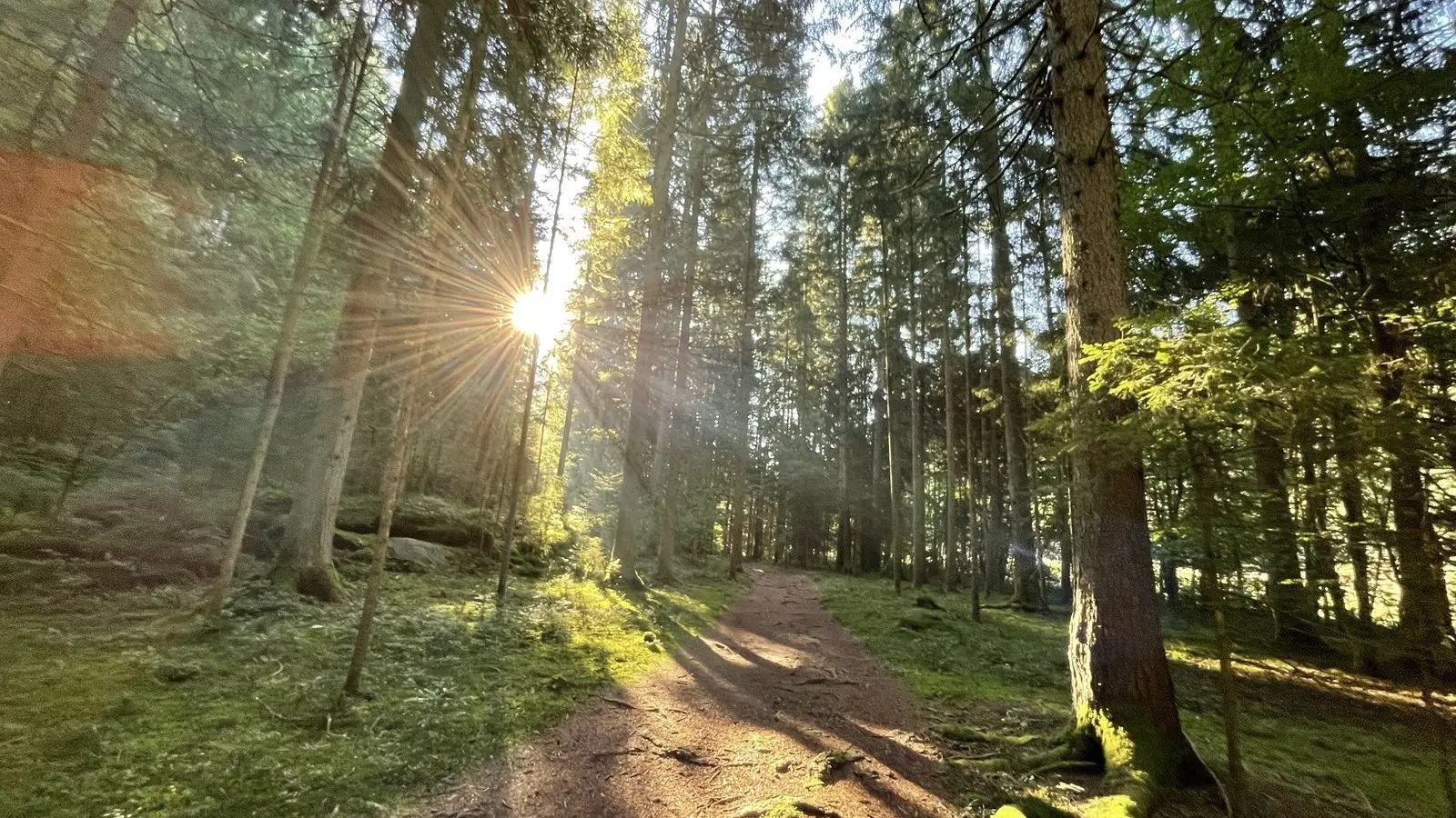 Dann steigt der Weg Richtung Böbrach an, wird wieder steinig und wurzelig, doch stets leicht zu schaffen. Die Bänke, die entlang der Tour häufig kommen, bieten Bikern und Wanderern Raum für eindrucksvolles Innehalten und immer wieder tauchen Einkehrmöglichkeiten auf. Zeigen sich die ersten Häuser, hält man auf die Ortsmitte zu, wo sich eine große Schautafel befindet, die viele Tourenvorschläge bietet.