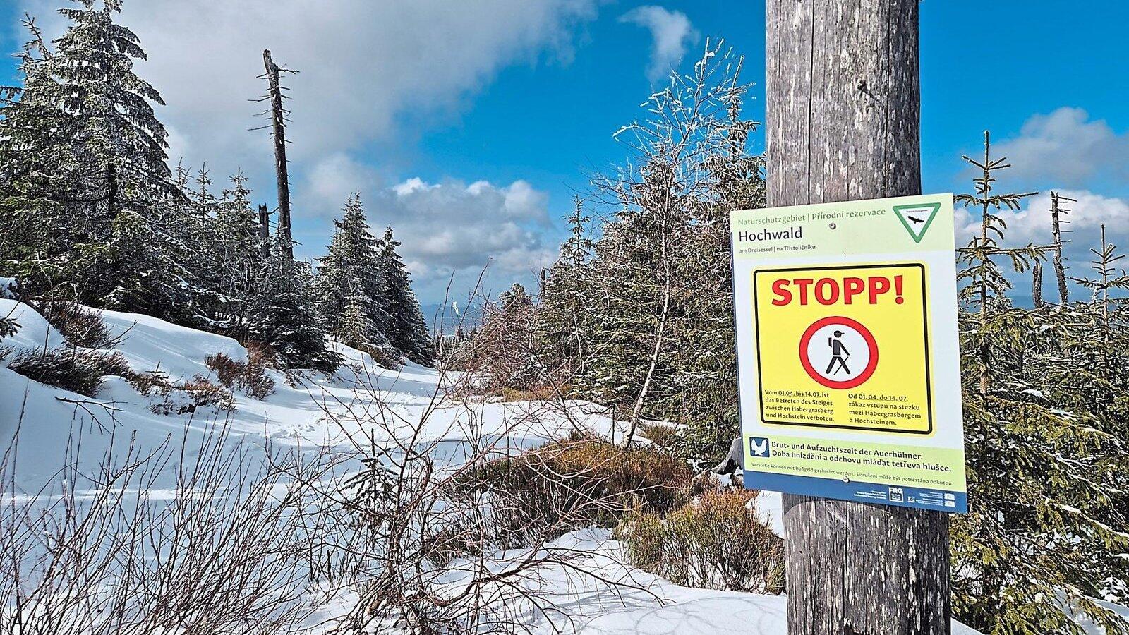 Zwischen 1. April und 14. Juli ist der Habergrasberg am Dreisessel zum Schutz des Auerhuhns gesperrt.