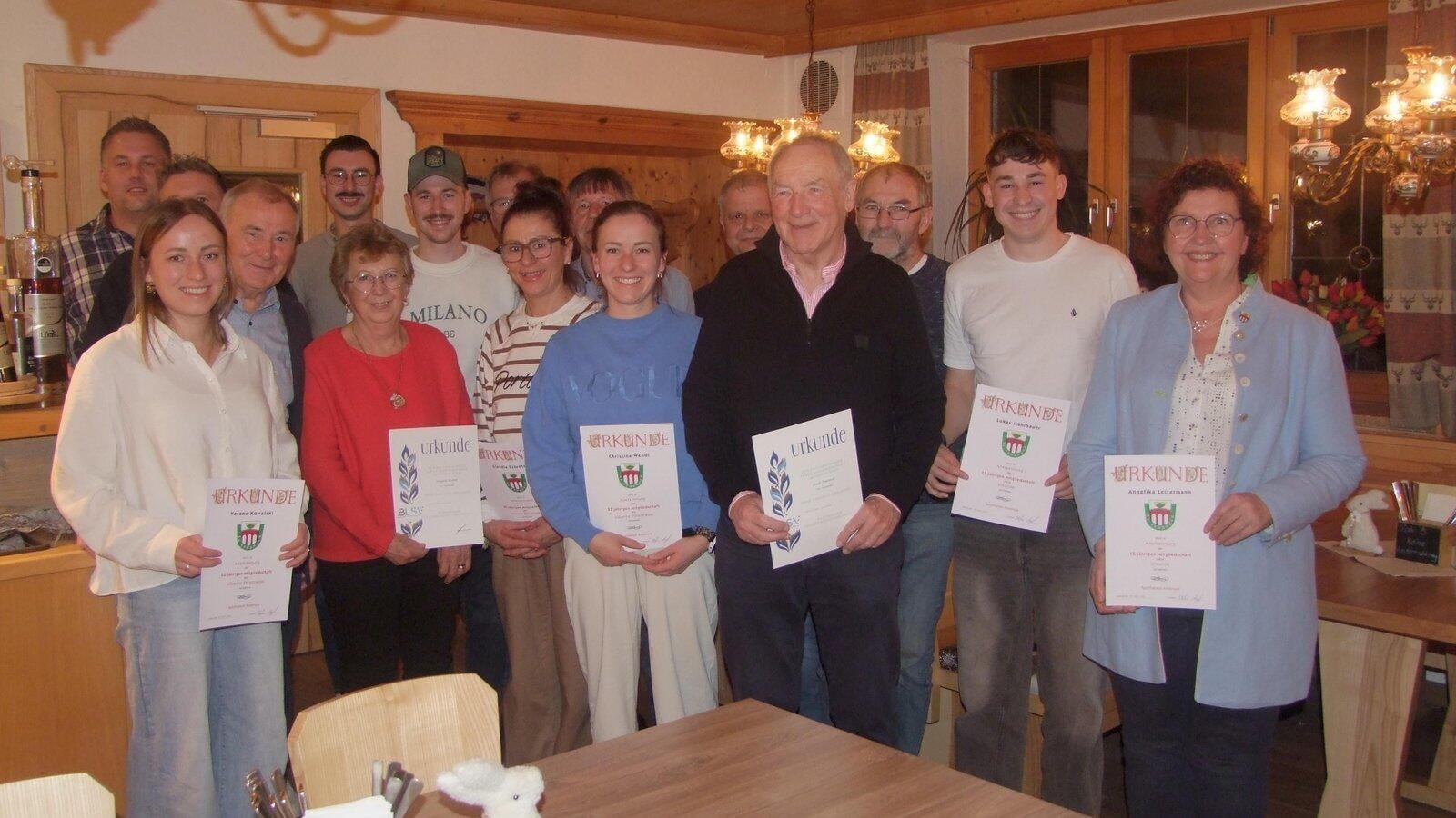 Ein Teil der Geehrten mit Bürgermeisterin Angelika Leitermann (r.), 1. Vorsitzender Stefan Neppl (l.) seinem Stellvertreter und stellvertretendem Landrat Hermann Brandl (vierter v. l.)