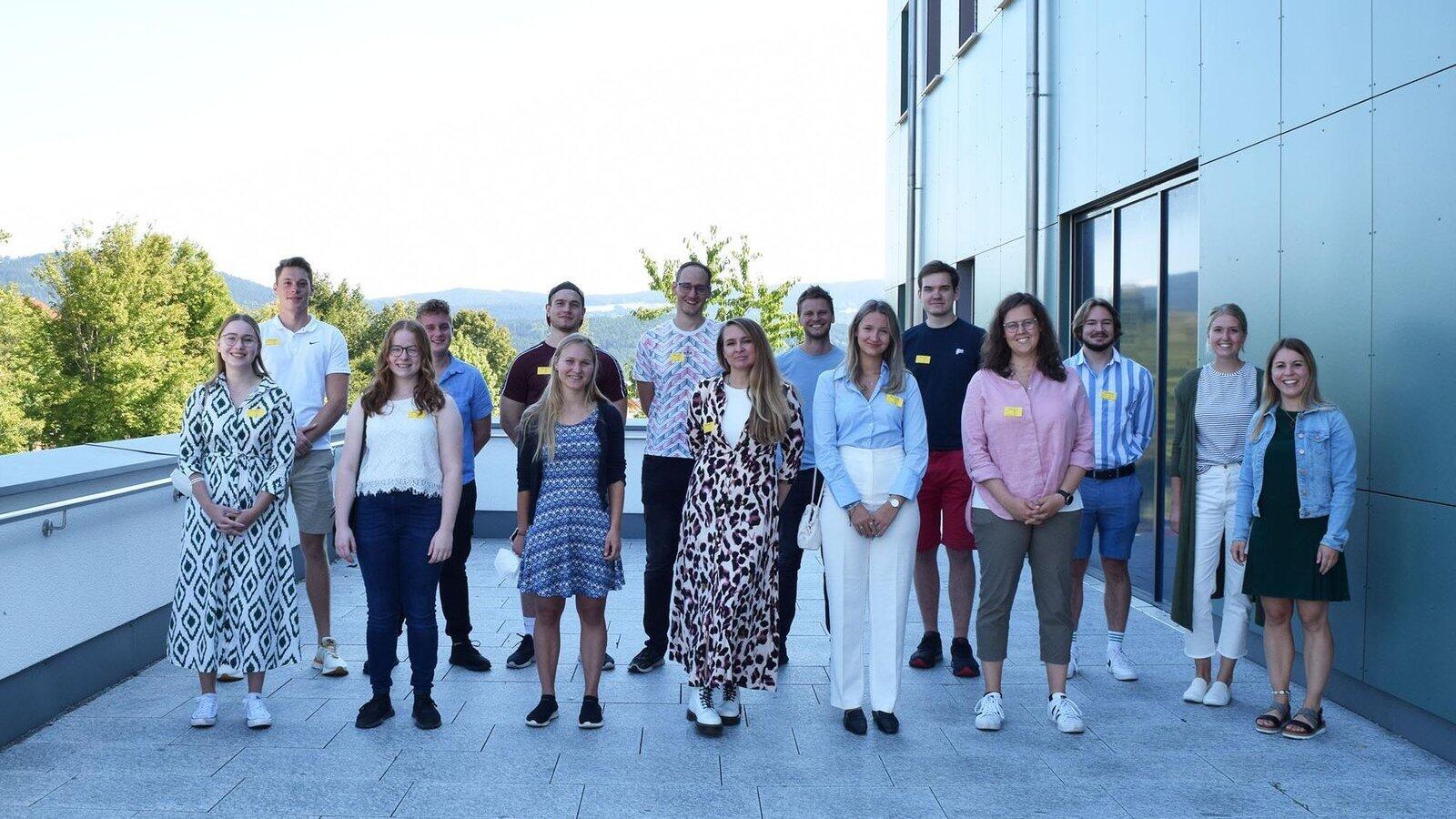 Stellvertretende Personalleiterin Susanne Geier (rechts) und Eva Liebhaber, Mitarbeiterin der Personalabteilung (Zweite von rechts), mit einem Teil der Klinikstudenten.