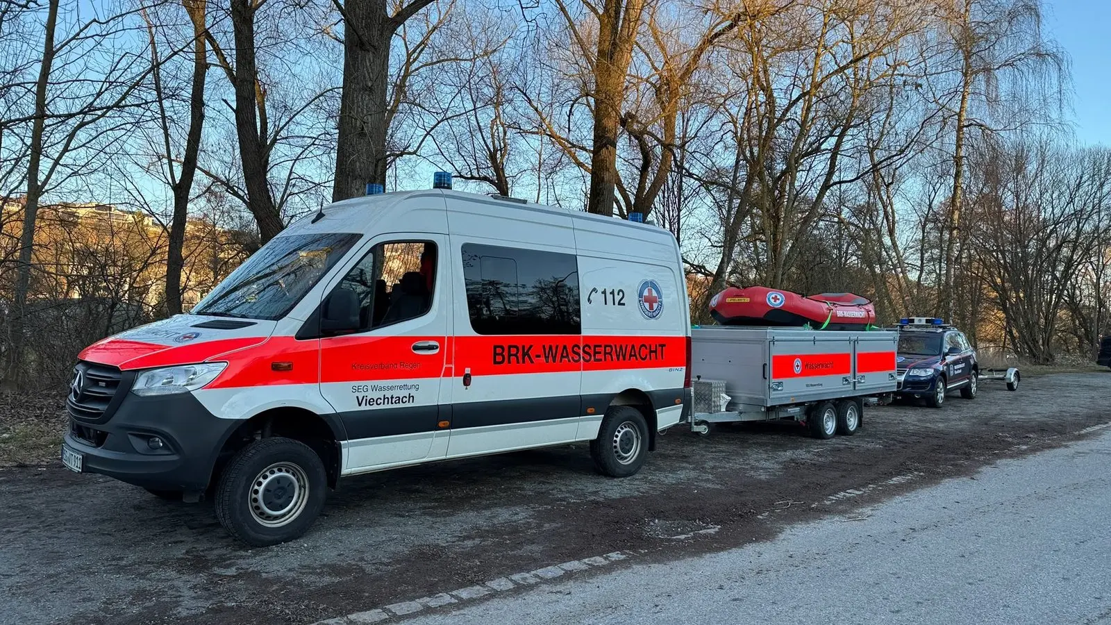 Kreisbrandinspektor Christian Stiedl, KBM Alex Iglhaut, UG-ÖEL Ludwig Sperl, die Feuerwehr Viechtach und auch die Feuerwehr Pirka mit ihrem Boot sowie Bergwacht und Wasserwacht waren am Mittwoch im Einsatz. Einsatzleiter des Rettungsdienstes war Marco Tetek. Nico Gruber bediente die Drohne, mit dem nach dem Vermissten gesucht wurde. Auch ein Sonargerät der Wasserwacht war zum Einsatz gekommen, die Suche nach dem Mann blieb allerdings erfolglos.