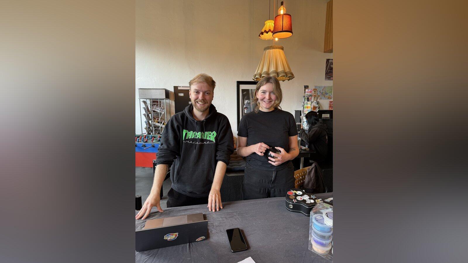 Mario Biermeier hatte seinen privaten 3D-Drucker dabei und Theresa Raith stand ihm hilfsbereit zur Seite.