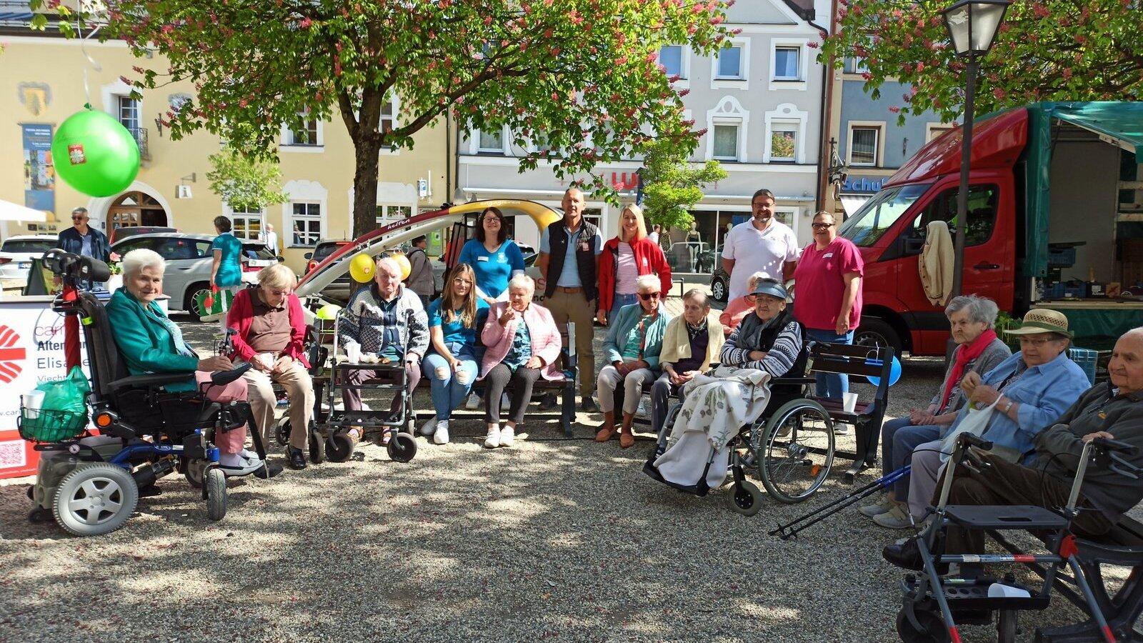 Markus Quappik, Leiter des Elisabethenheims in Viechtach (Mitte), machte mit Mitarbeitern und Heimbewohnern auf das Thema Pflege aufmerksam.