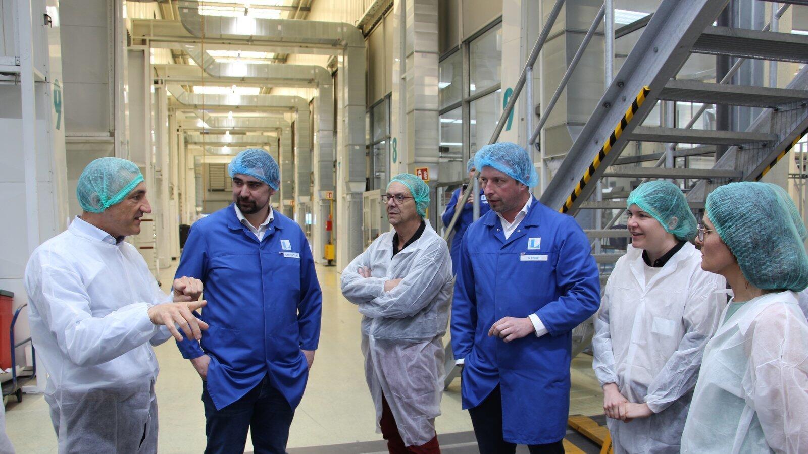 Den Gästen wurden die Produktionsschritte im Werk der Firma Linhardt gezeigt. Hier muss alles sauber ablaufen, vor dem sogenannten Reinraum, wo die Tuben vor allem für die Pharmazie verpackt werden, gibt es noch eine weitere Hygieneschranke. Zuvor nahm er sich Zeit, um mit uns über die momentane wirtschaftliche und politische Situation zu sprechen.