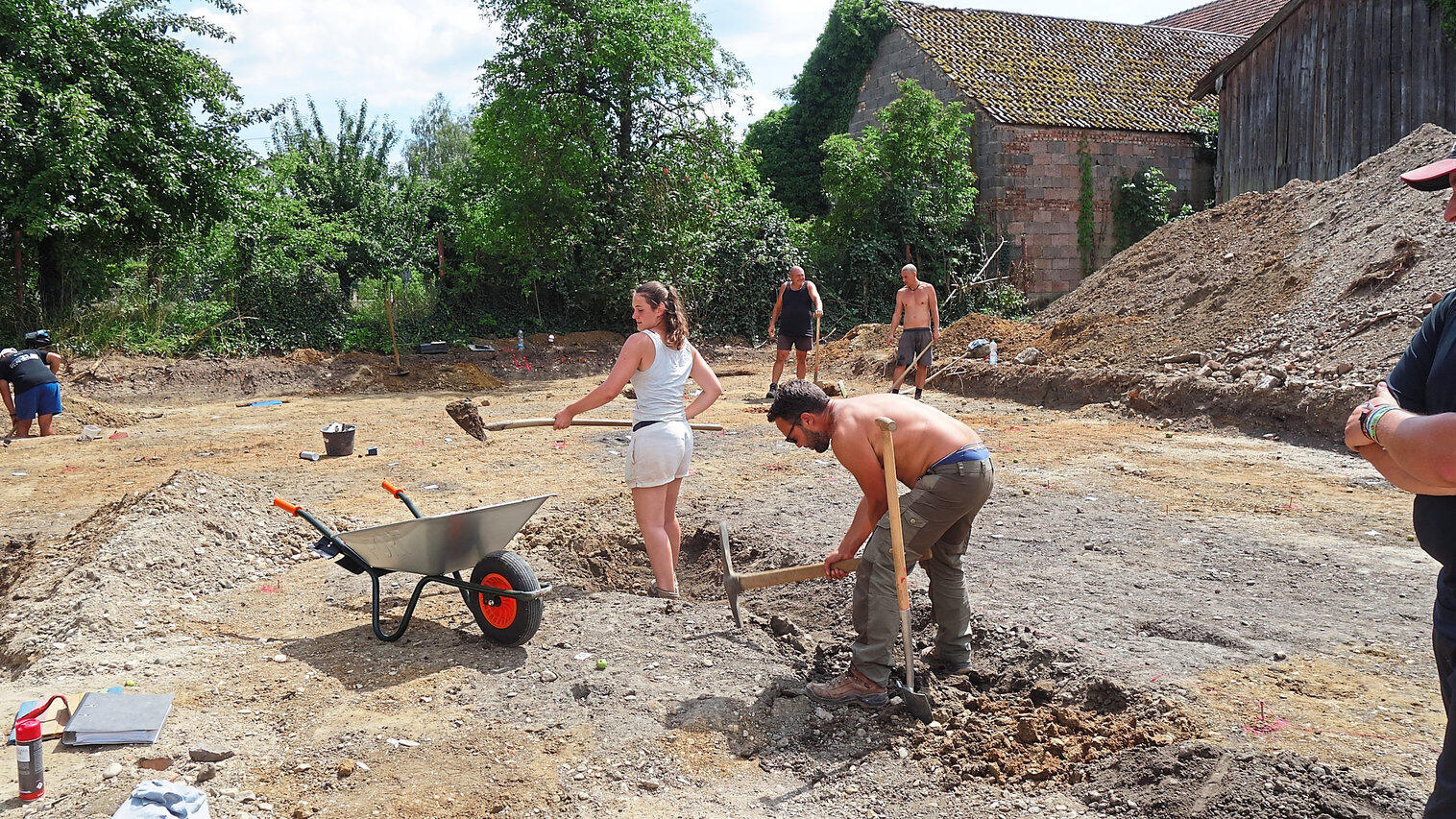 Grabungsspezialisten der Firma Arctron untersuchen das Bodendenkmal beim ehemaligen Pfatta Morgana.