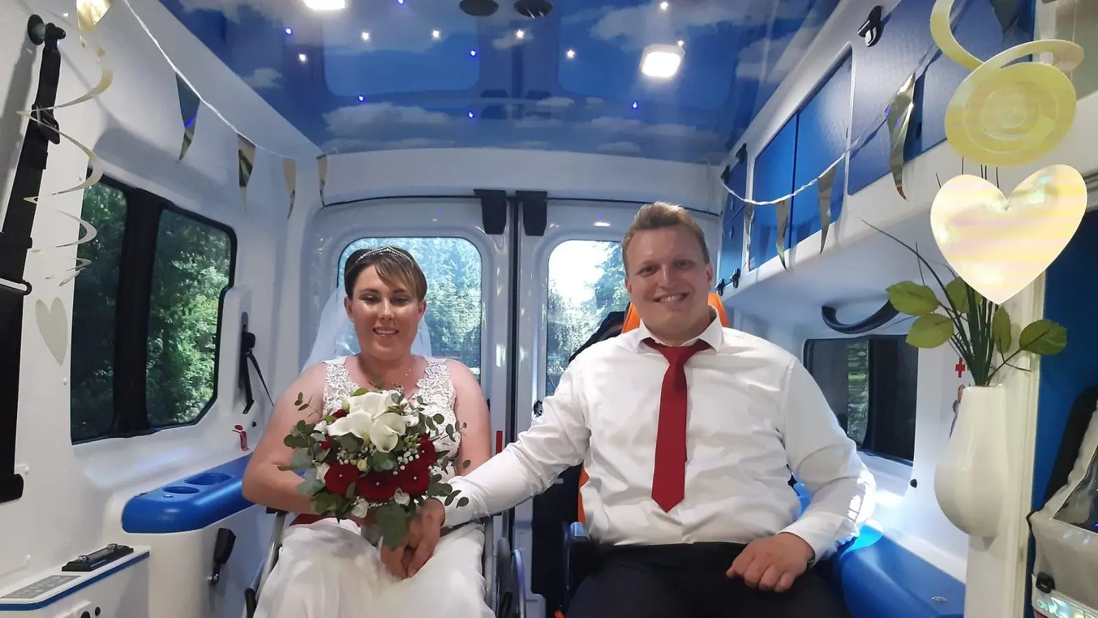 Nach der Hochzeit fahren Selina und Michael im Hospizmobil gemeinsam nach Hause.
