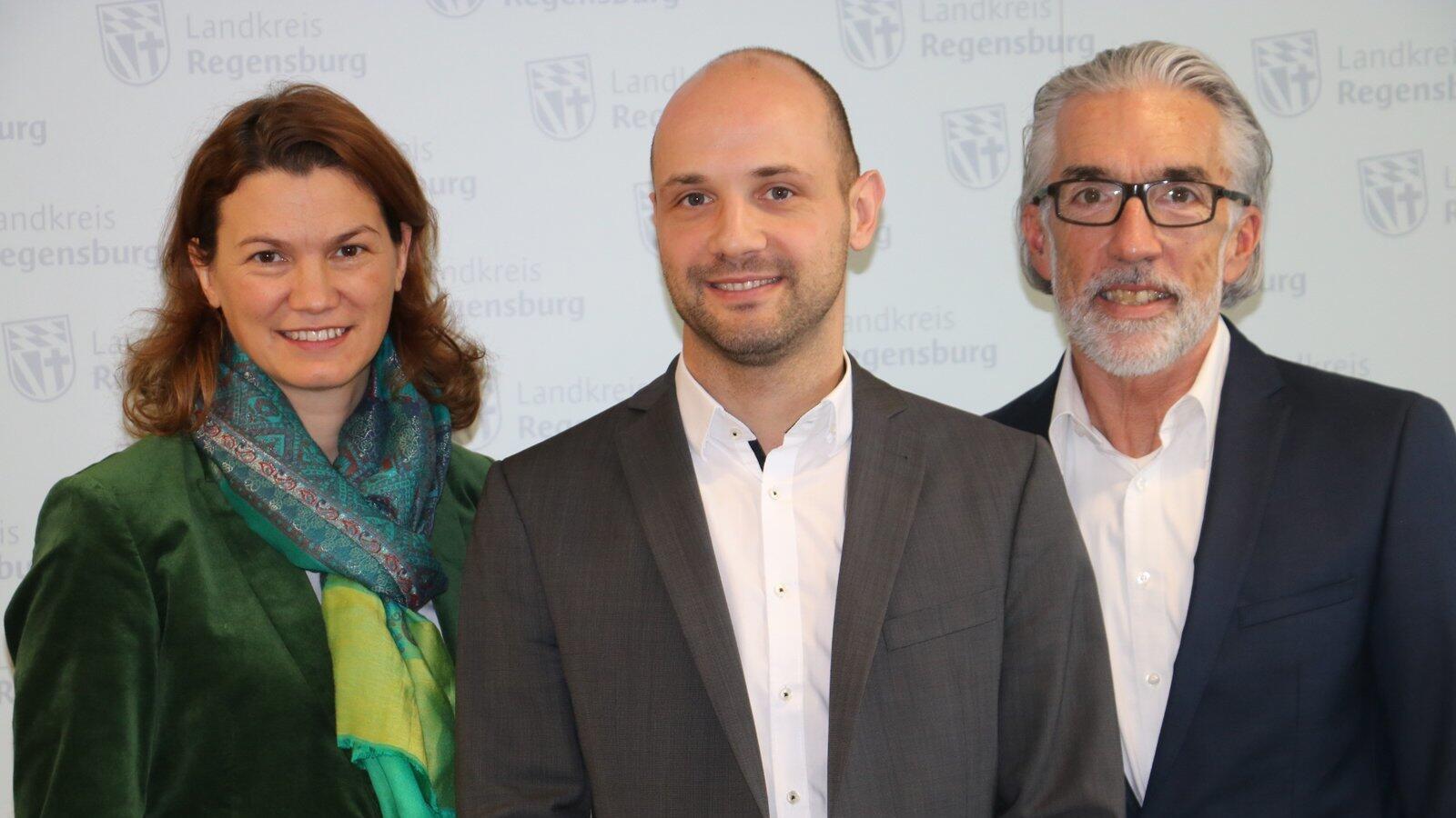 Der neue Leiter des Jobcenters im Landratsamt, Christian Meier (Mitte) mit Landrätin Tanja Schweiger und dem neuen Leiter der Arbeitsagentur Regensburg, Johann Beck.