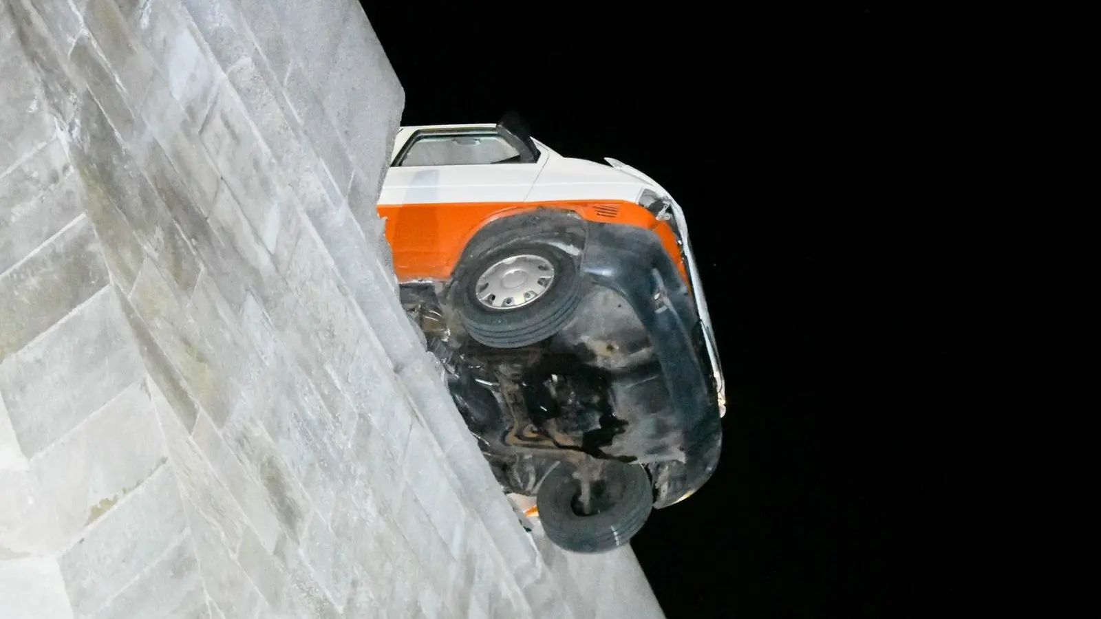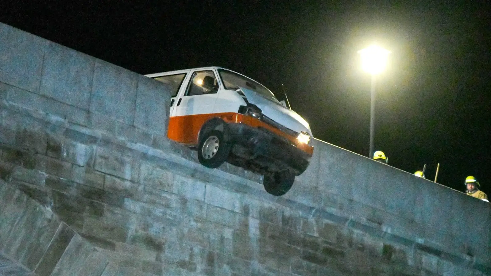Die Einsatzkräfte der Feuerwehr und ein Abschleppunternehmen holten den VW Bus von der Brücke. Das Brückengeländer sicherten sie mit einem Bauzaun, so dass Radfahrer und Fußgänger die Brücke weiter überqueren können. Die Statik des Bauwerkes sei nicht betroffen, wie die Stadtverwaltung mitteilte. Auch unter der Brücke soll ein Durchgang offengehalten werden. Eine Schätzung zur Schadenshöhe beziehungsweise den Reparaturkosten lag noch nicht vor. Eine Fachfirma habe den Schaden am Dienstag in Augenschein genommen. Die herabgefallene Brüstungsplatten seien jeweils bis zu einer Tonne schwer und sollen im Laufe der Woche geborgen werden.