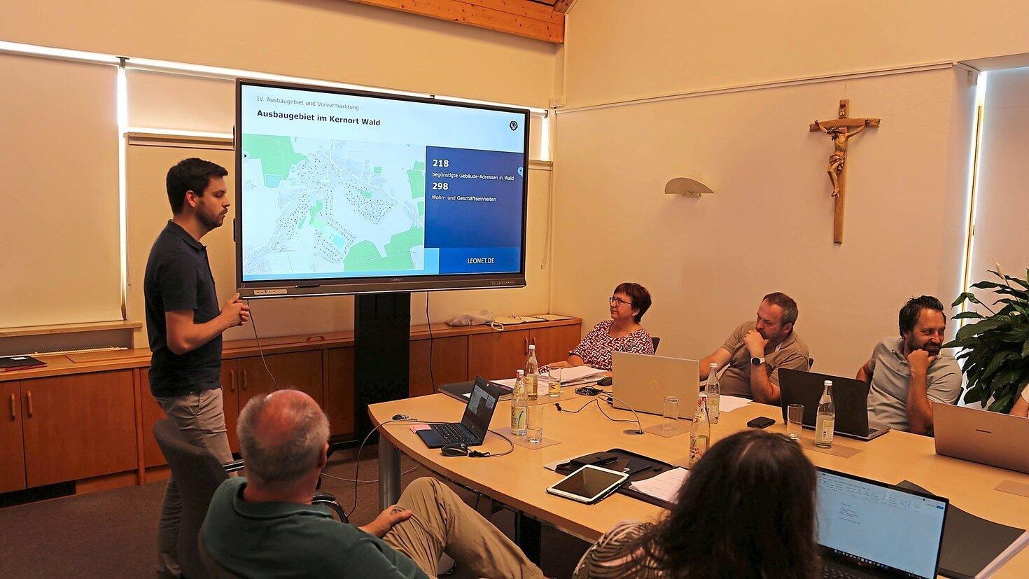 Der Gemeinderat von Wald hat sich am Mittwoch mit dem eigenwirtschaftlichen Breitbandausbau durch Leonet in Teilbereichen des Orts Wald befasst. Adrian Richter stellte das weitere Vorgehen vor.