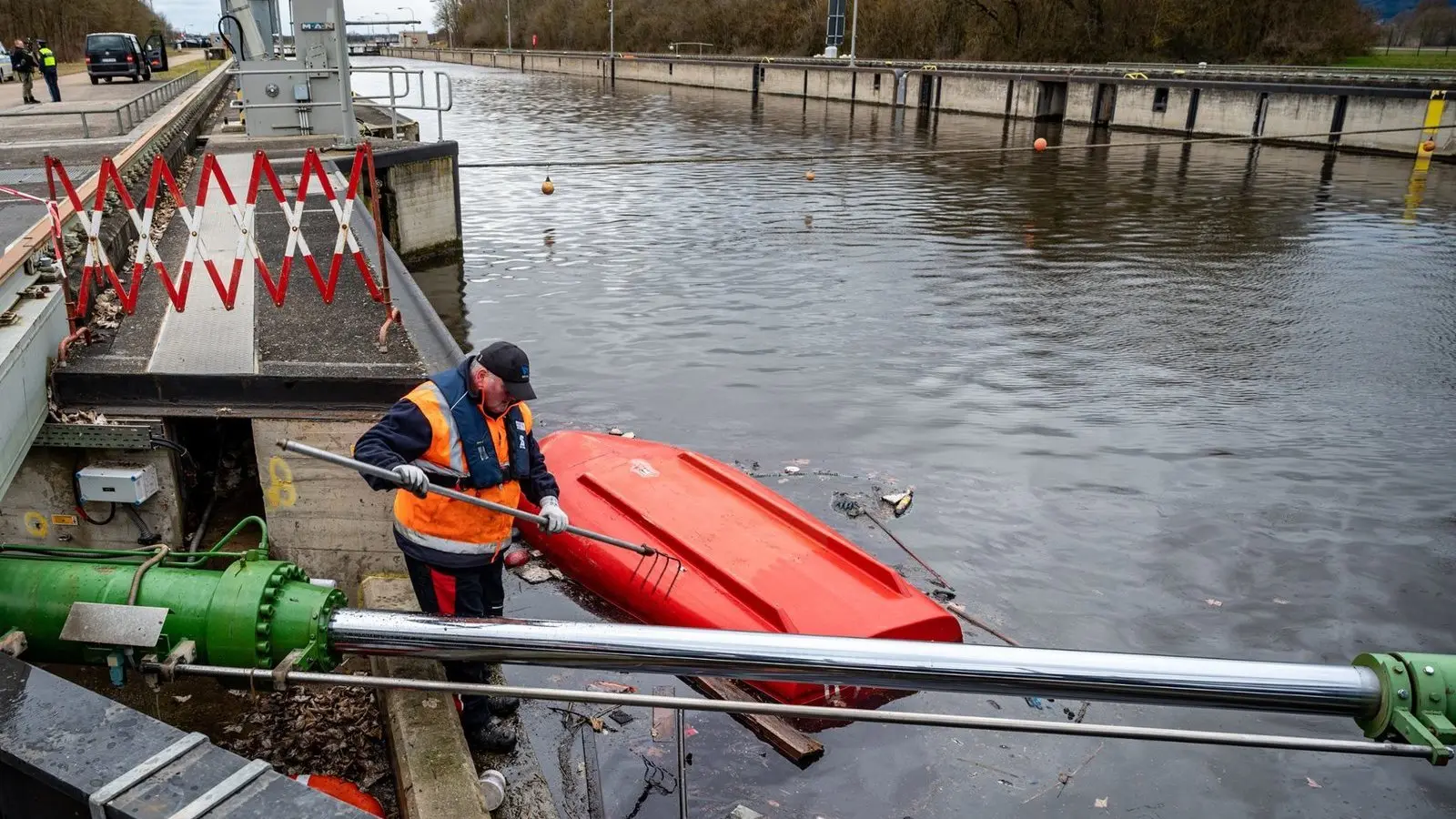 In den nächsten Tagen "steht eine aufwendige Bergung bevor", teilte die Polizei mit. Der Schaden dürfte sich mindestens im hohen sechsstelligen Bereich bewegen, die Bergungskosten dürften ebenfalls erheblich sein. Ob auch die Schleuse beschädigt wurde, sei erst nach der Bergung zu klären.