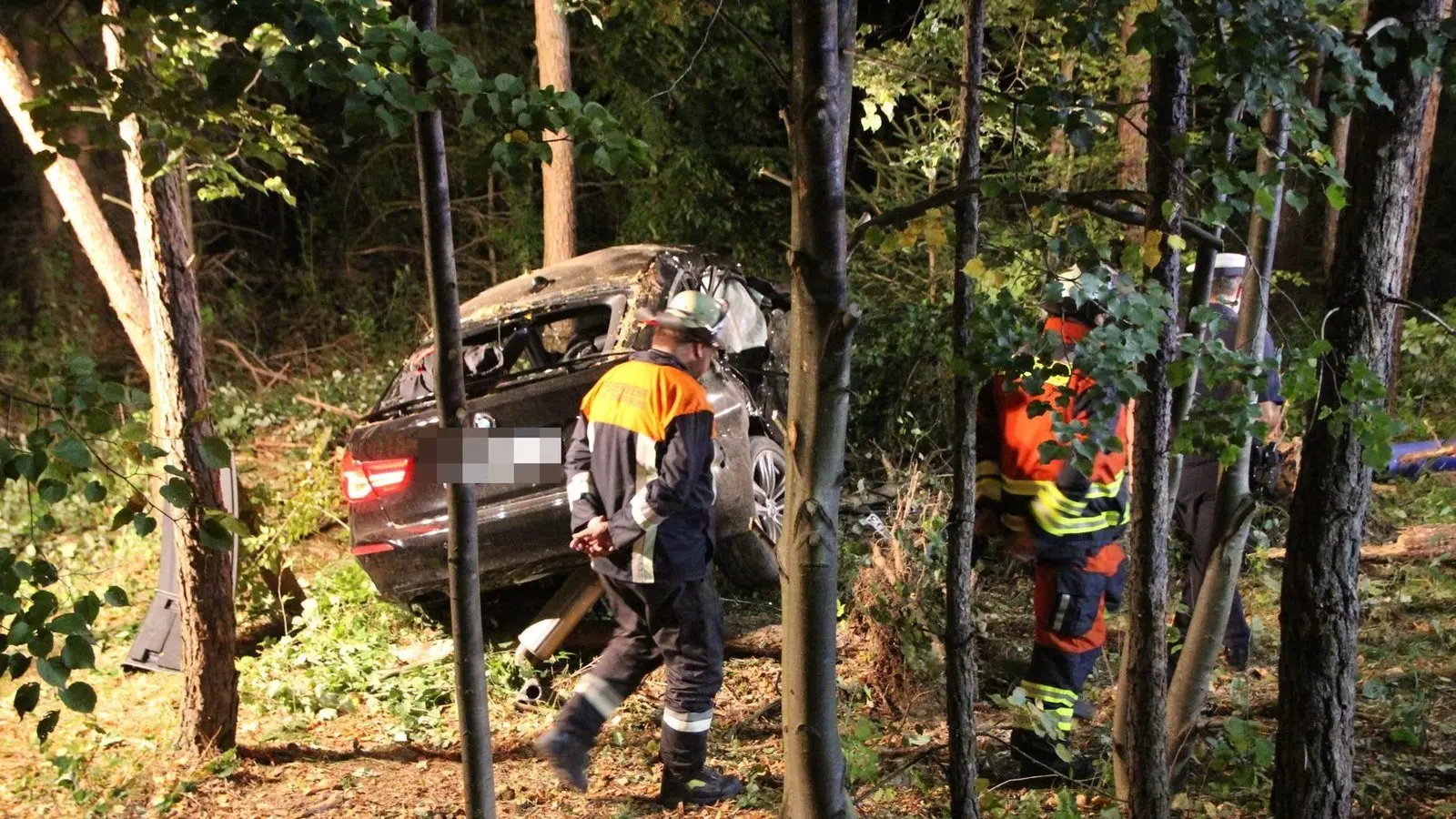 Ein Bild der völligen Zerstörung bot sich den Einsatzkräften am späten Dienstagabend im Schwaighauser Forst. Zwei komplett demolierte Wracks im Unterholz des Waldstücks. Eines der beiden Autos wurde sogar erst entdeckt, als die Retter gerade das andere Fahrzeug mit der Rettungsschere aufschnitten.