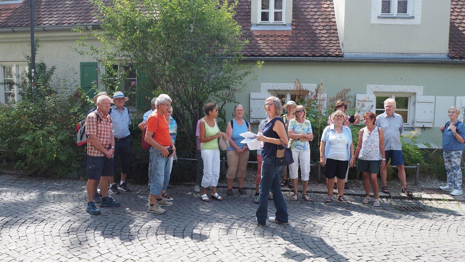 Andrea Meilinger (Mitte) erzählte den Kolping-Wanderern vor dem Üblacker-Häusl viel Wissenswertes über Haidhausen.
