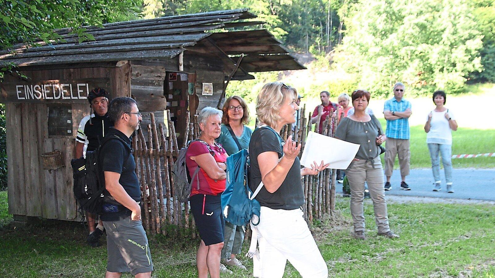 Beim "Kultort" Einsiedelei in Wiesent informierte Bürgermeisterin Elisabeth Kerscher über die Klause und deren Entstehung.