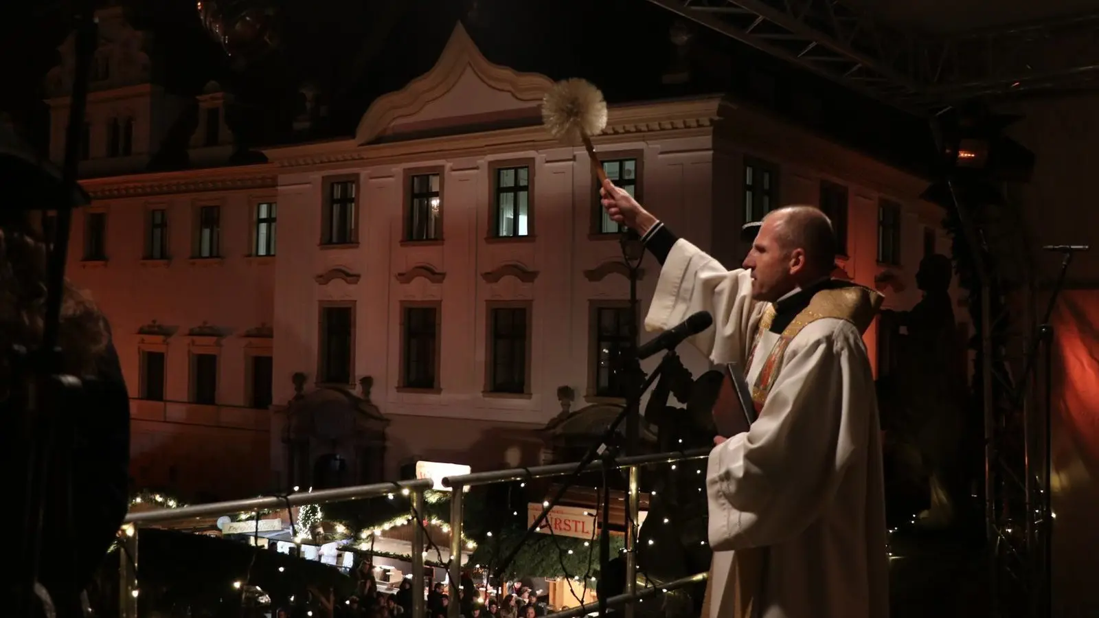 Alle Jahre wieder kommt nicht nur das Christuskind, sondern auch einer der bekanntesten Weihnachtsmärkte der Region. Pünktlich um 17 Uhr ertönte die erste Fanfarensilbe vom Balkon im Innenhof von Schloss Sankt Emmeram in Regensburg und läutete damit die Eröffnungsfeierlichkeiten ein.