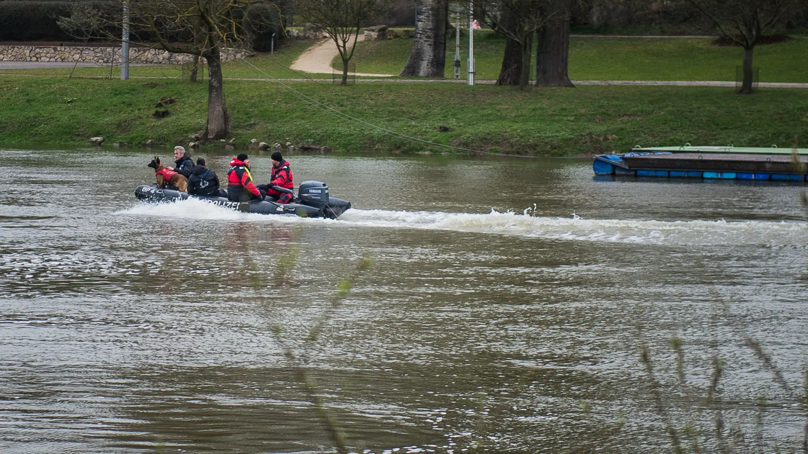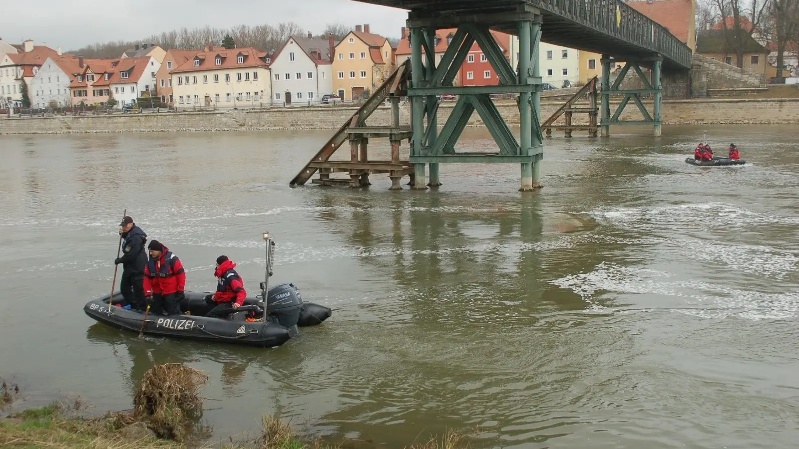 Polizeitaucher suchen am Freitagvormittag in der Donau nach der seit Sonntag vermissten Malina Klaar. An dieser Stelle hatten die Leichenspürhunde am Donnerstag angeschlagen.