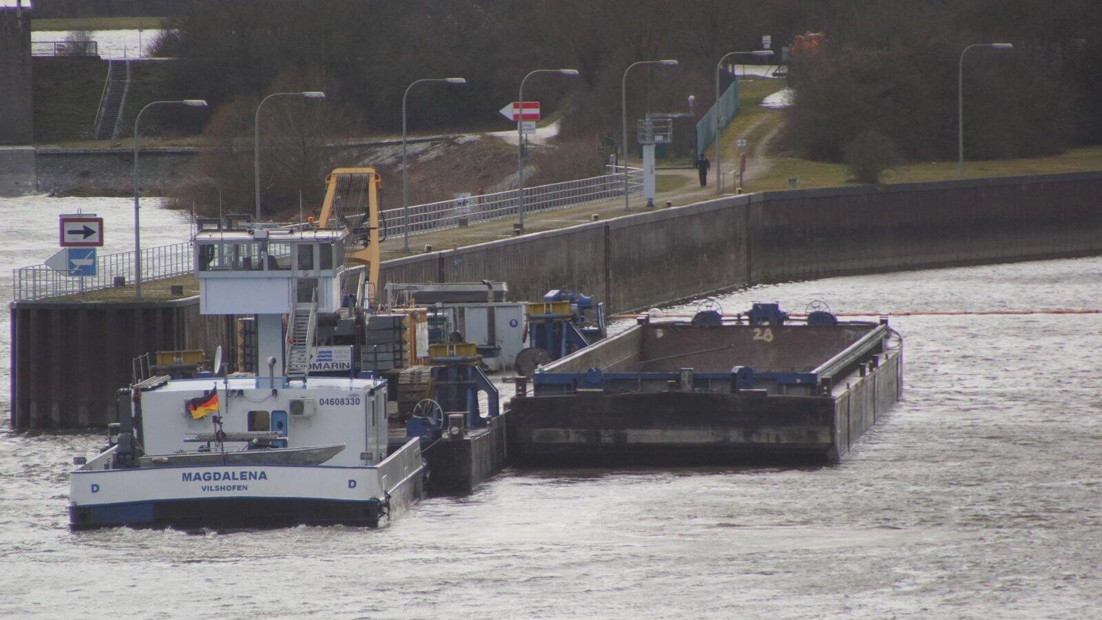 Ein Spezialtaucher aus Baden hat am Dienstagmittag das Wrack des Güterschiffs Achim erkundet, das im Geislinger Schleusenbecken versunken ist.