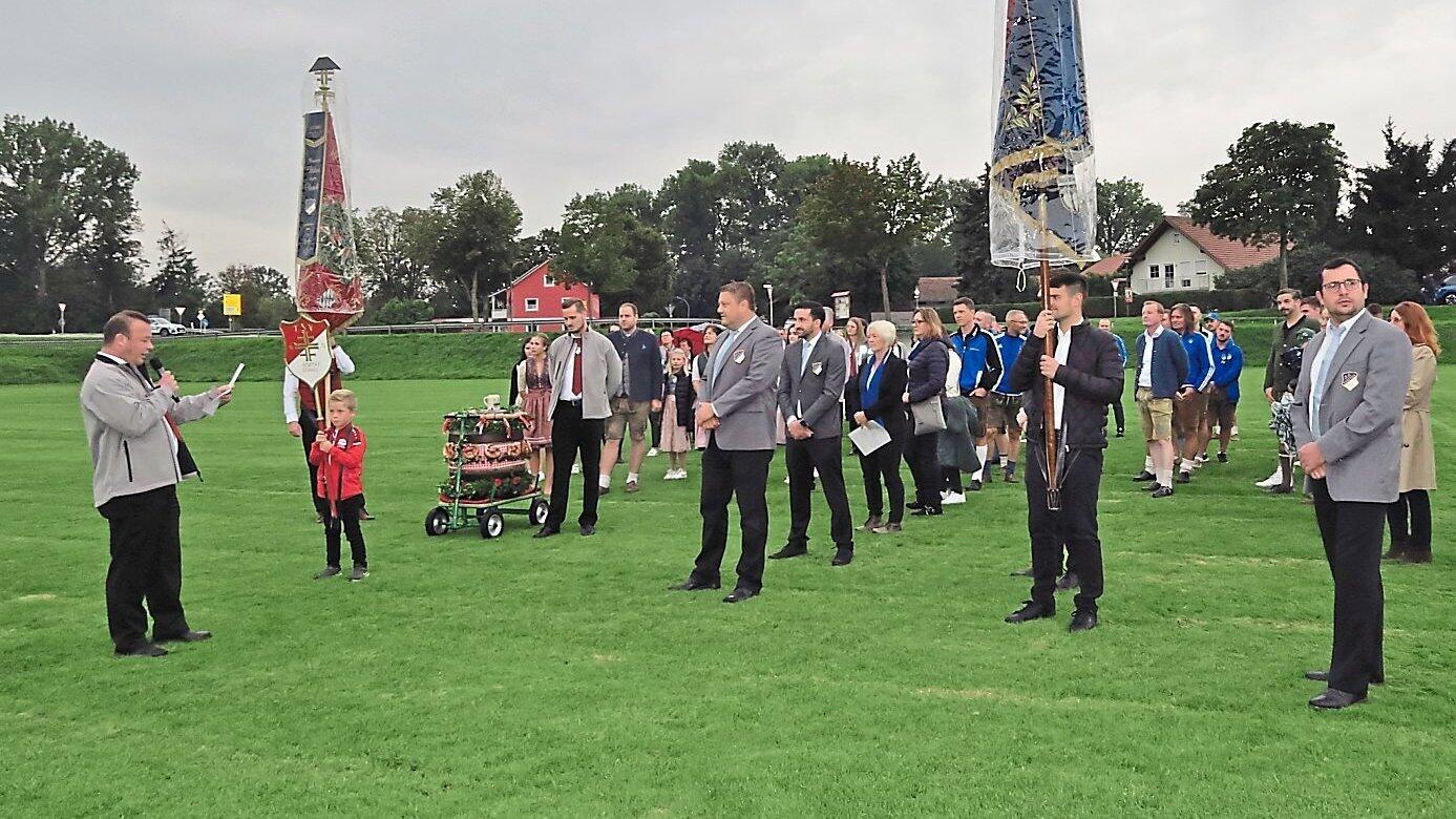 Festleiter Martin Gritschmeier (links) bat den SV Pfatter um die Übernahme der Patenschaft.