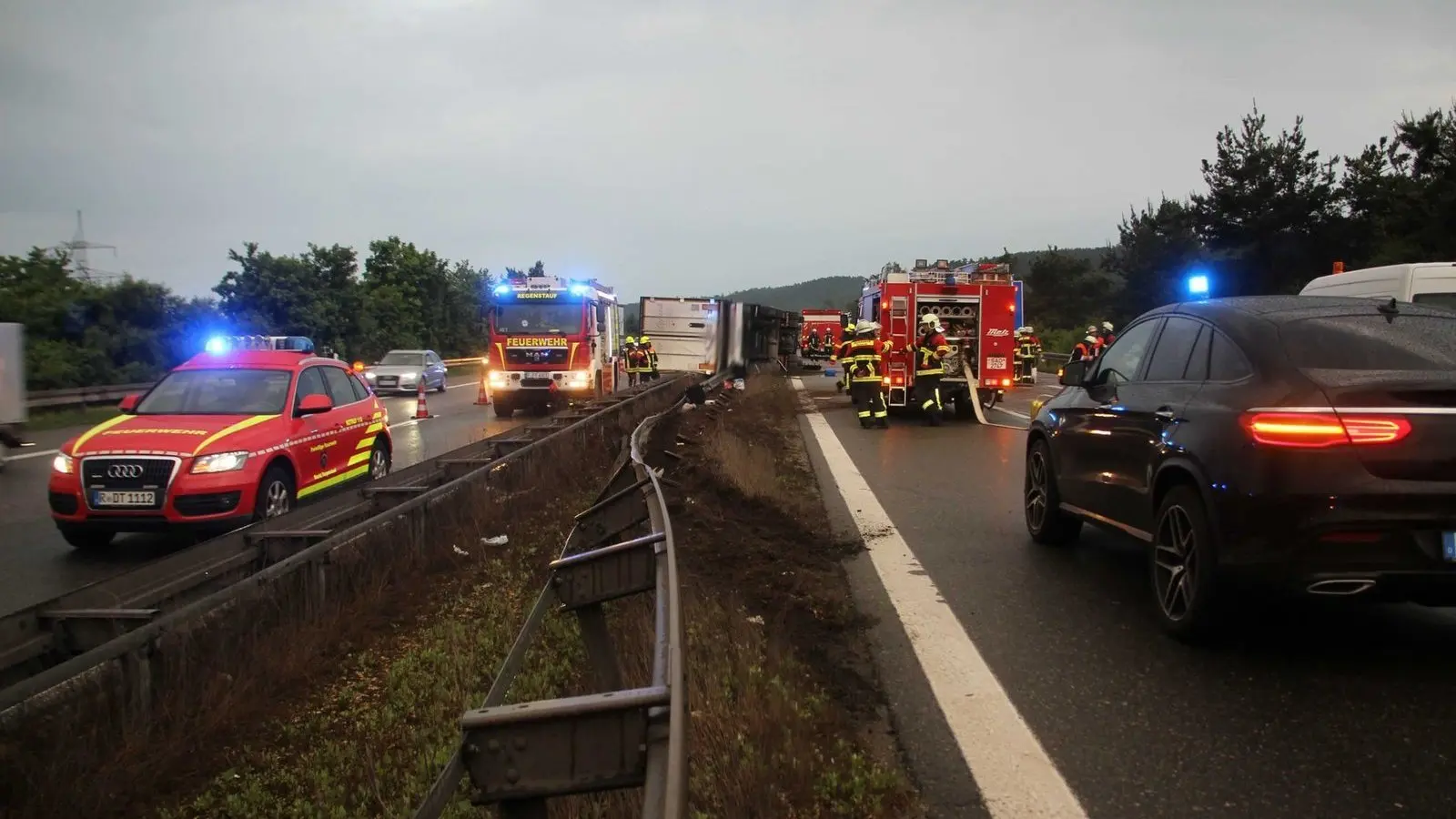 Auf der A93 zwischen Ponholz (Landkreis Schwandorf) und Regenstauf (Landkreis Regensburg) hat sich am Mittwochabend ein schwerer Unfall ereignet, wie die Polizei mitteilte.