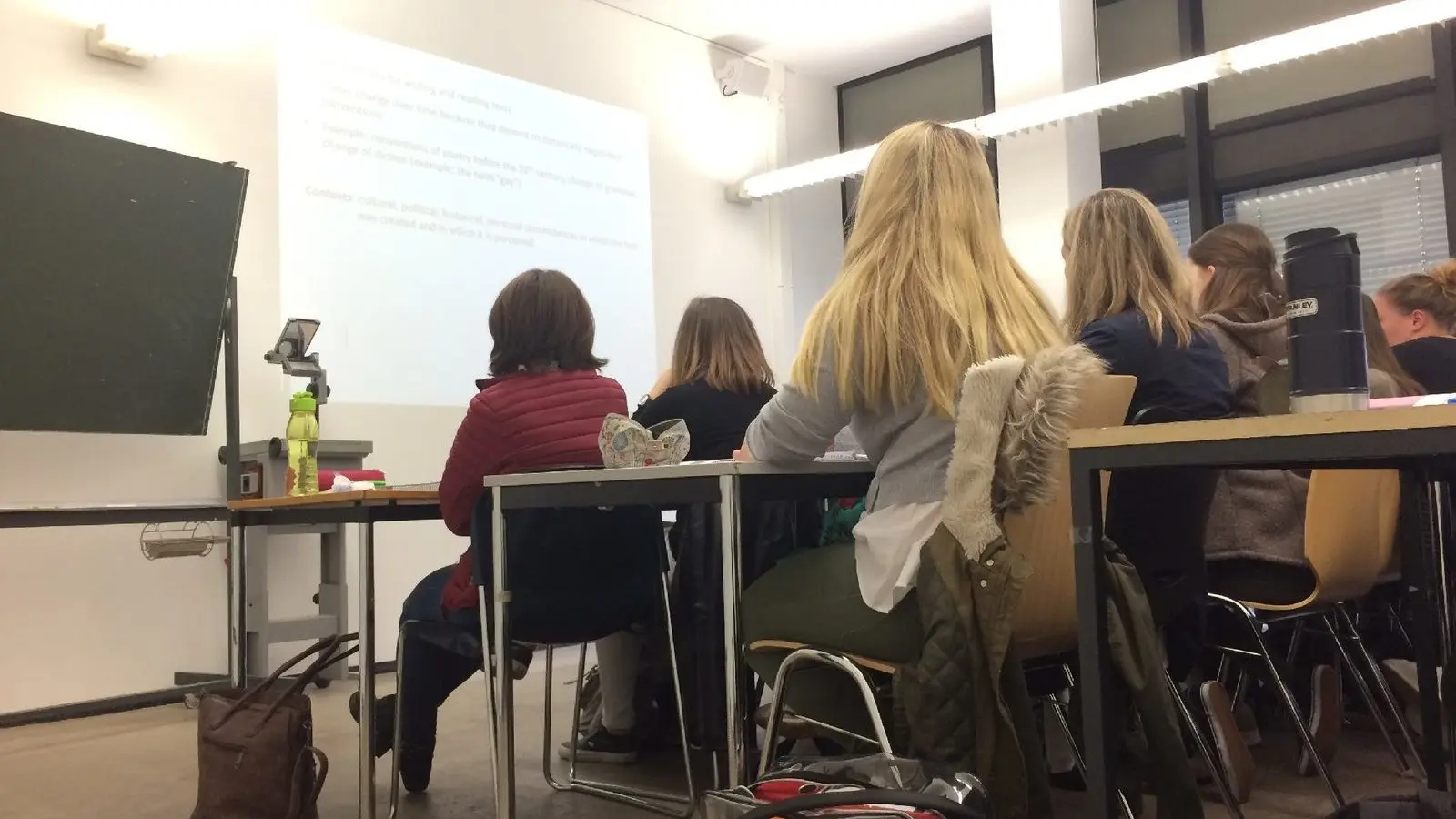 Während anfangs nur wenige Studenten in dem Kursraum Platz genommen haben, drängen sich um kurz vor halb neun bereits über vierzig Studenten in das kleine Zimmer. Einige von ihnen müssen stehen und nicht alle von ihnen dürfen bleiben. "32 Stühle, 32 Plätze", erklärt der Dozent, Dr. Martin Decker knapp. Da es seit diesem Semester keinen Eignungstest für Englisch mehr gibt, hätten sich doppelt so viele Studenten wie sonst immatrikuliert. "Da viele sich so spät angemeldet haben, war das für unser Institut schwer zu organisieren", erklärt er. Man habe sich dazu entschlossen, in den Einführungskursen statt 15 Studenten pro Seminar so viele zuzulassen, wie es Plätze im jeweiligen Raum gibt. Ganz pragmatisch vergibt Decker die Plätze an die zugelassenen Studenten. Die auf der Warteliste müssen zittern. Während eine Studentin leise jubelt und auf einen freigewordenen Stuhl schlüpft, hört man von vielen ein enttäuschtes Seufzen: Nur einige wenige von den Wartenden dürfen bleiben, der Rest wird wieder aus dem Raum geschickt.