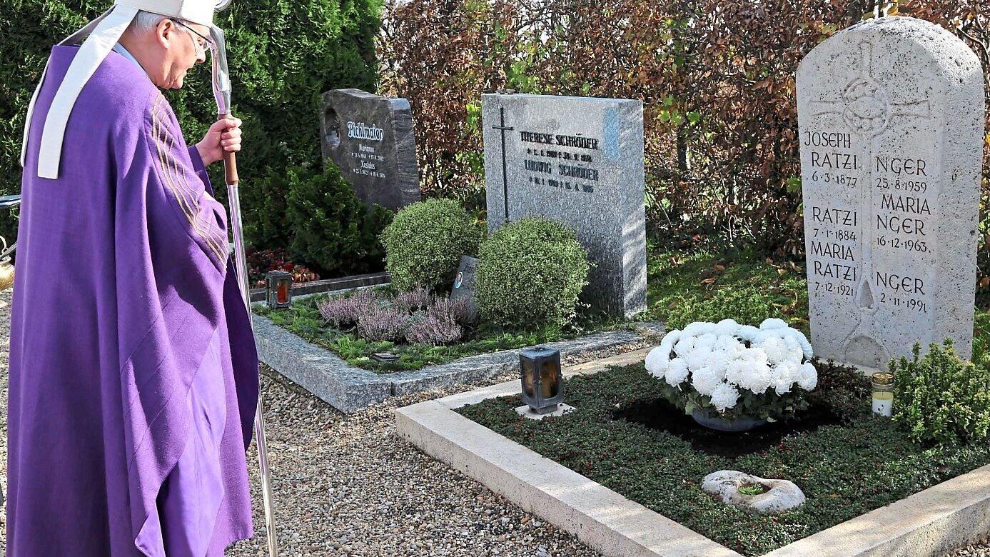 Am gestrigen Allerseelen-Tag feierte Bischof Rudolf in Ziegetsdorf die Heilige Messe und betete am Familiengrab von Papst em. Benedikt XVI. und seinem Bruder Prälat Georg Ratzinger.