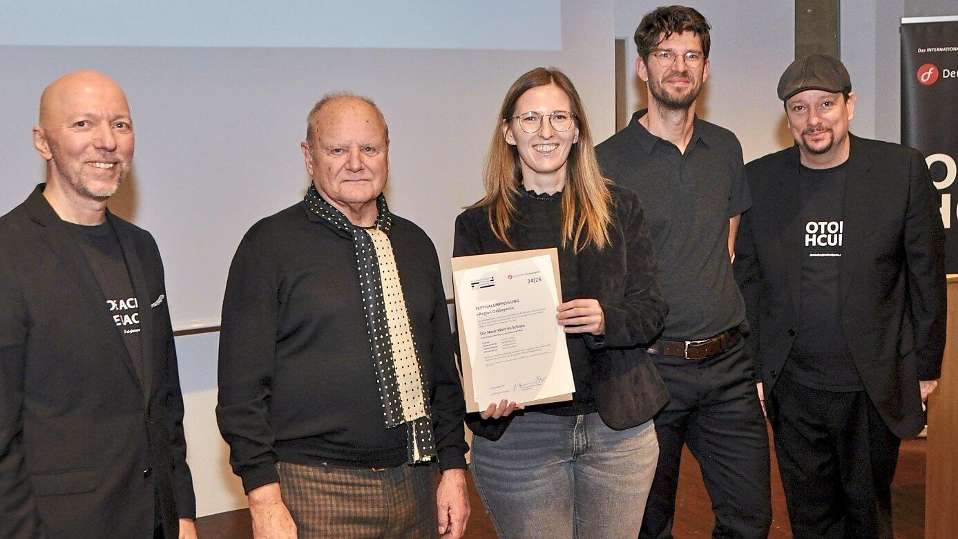 Wolfgang Sréter (2. von links mit Verlagsvertretern) ist der Fotograf der regionalen Festivalempfehlung. Hier mit den Eventorganisatoren Martin Rosner (links)und Andy Scholz (rechts).