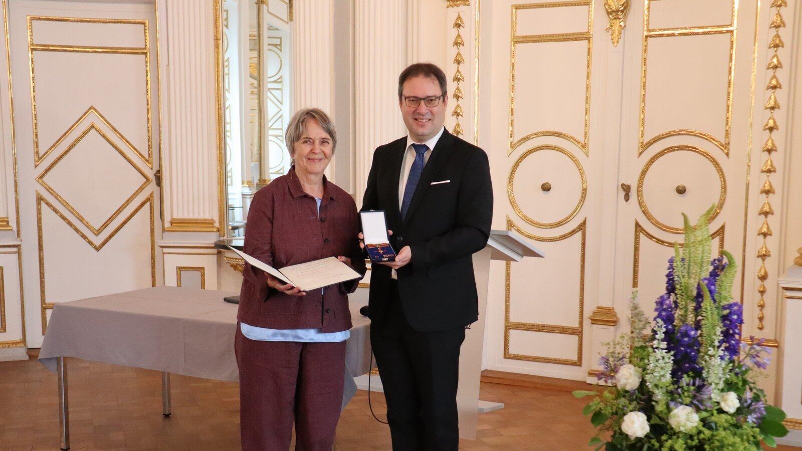 Regierungsvizepräsident Florian Luderschmid hat am Freitag Dr. Magdalena Helmig im Namen von Bundespräsident Frank-Walter Steinmeier das Verdienstkreuz am Bande des Verdienstordens der Bundesrepublik Deutschland