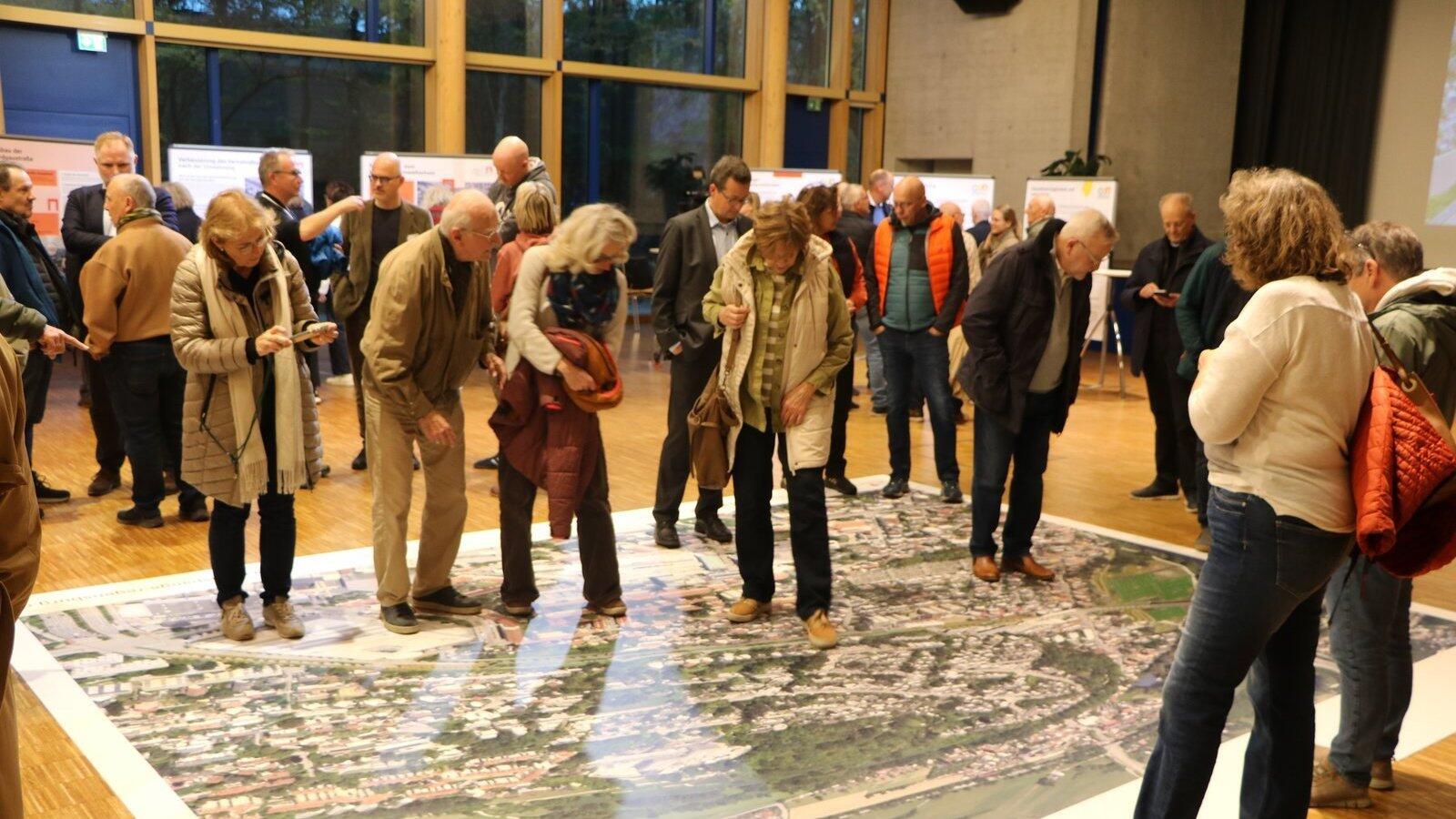 Die etwa vier mal vier Meter große Fotomontage mit allen drei Maßnahmenteilen fand großes Interesse bei den Besuchern.